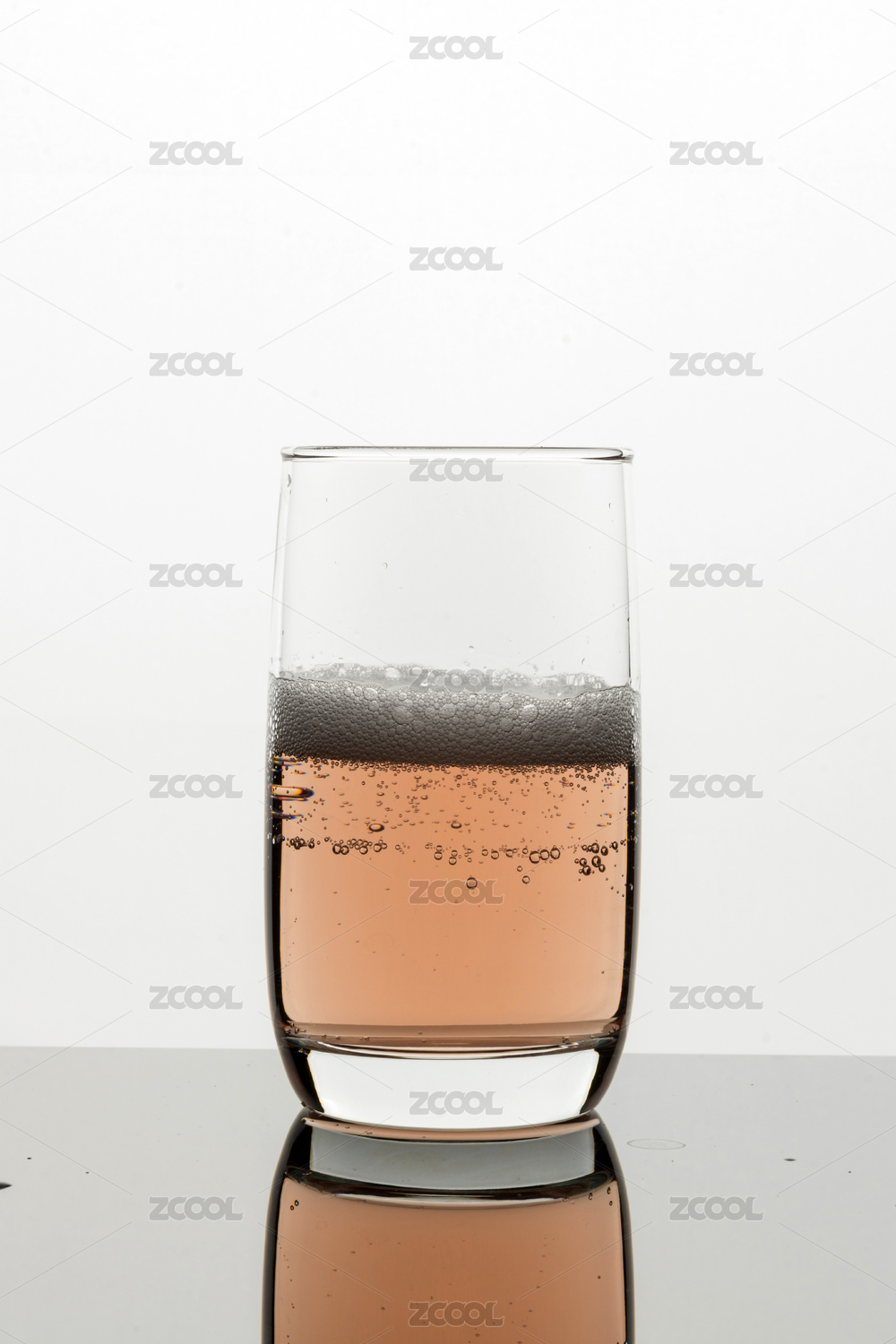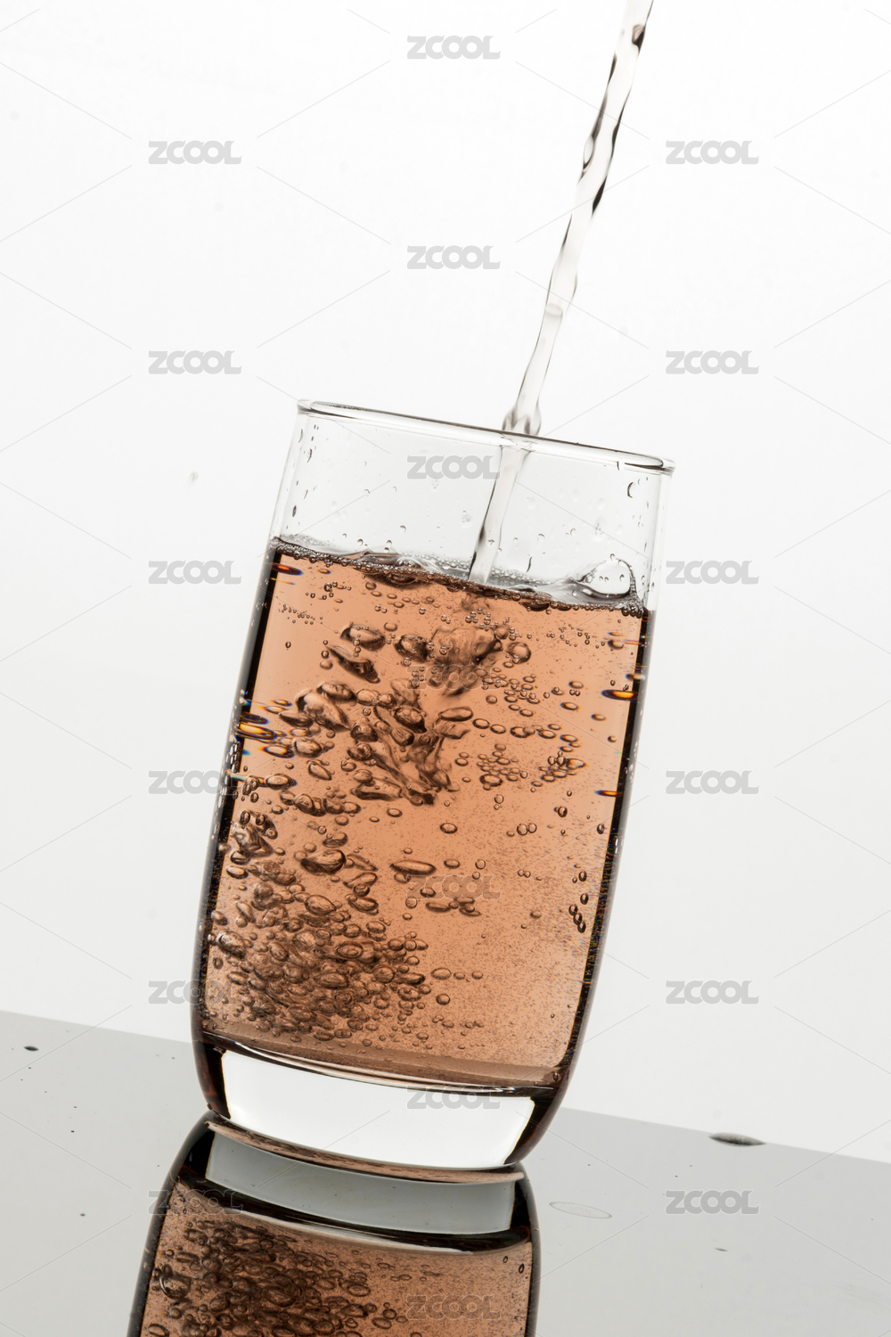 向玻璃杯中倒荔枝玫瑰白兰地气泡酒特写