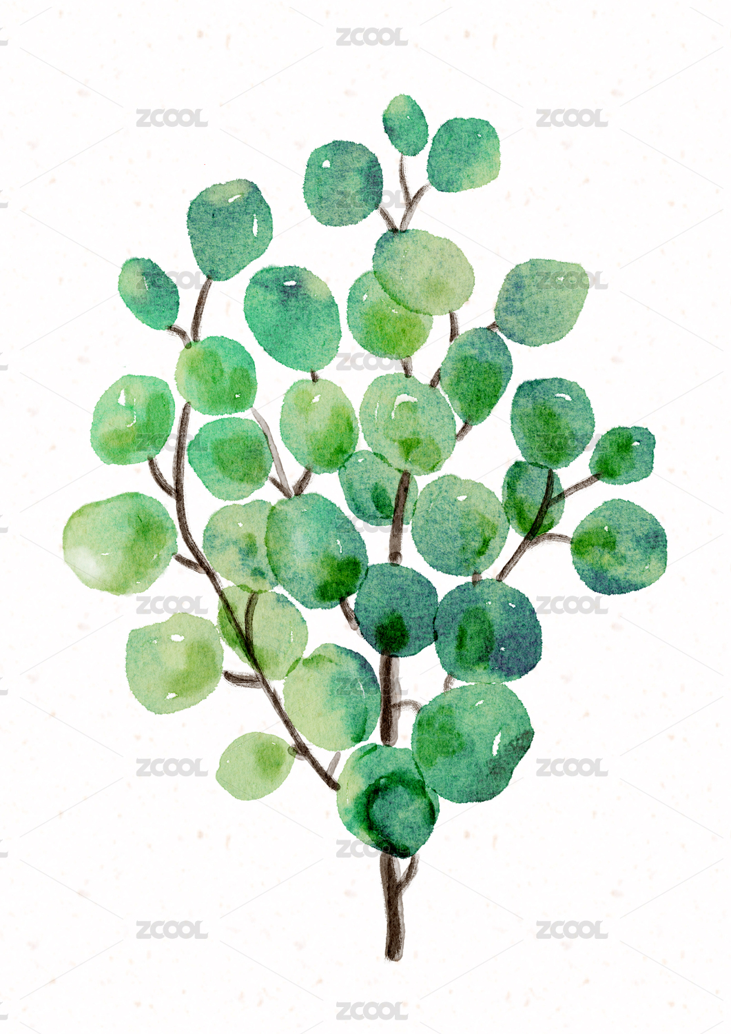 小清新水彩ins风植物印花绿色叶子素材