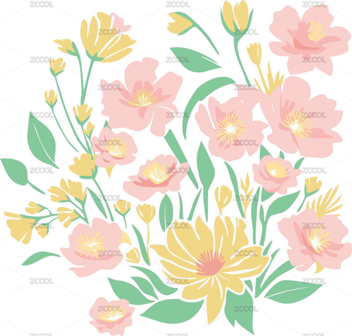 矢量花卉ins风插画