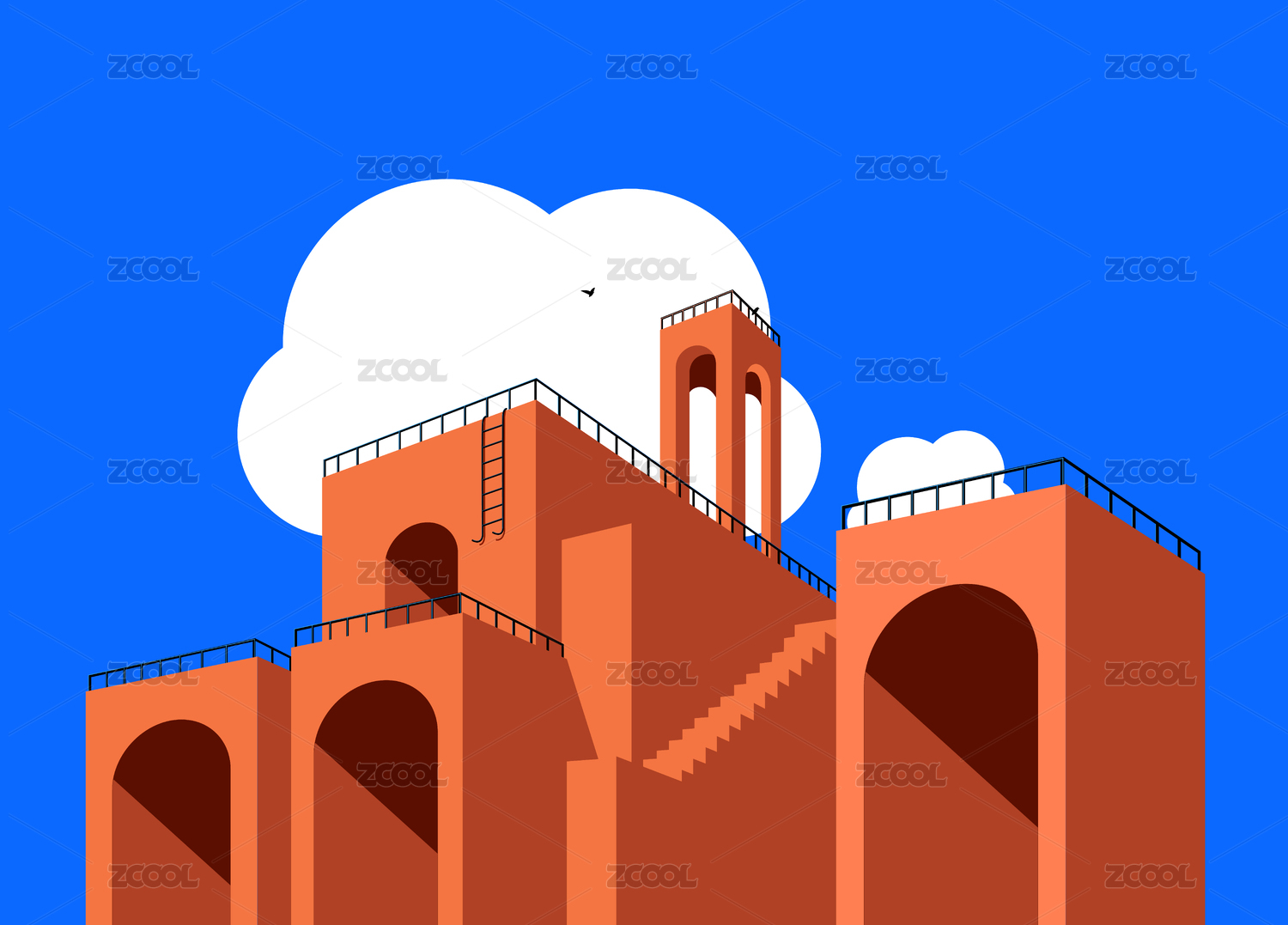 潮流插画简洁风ins风建筑扁平