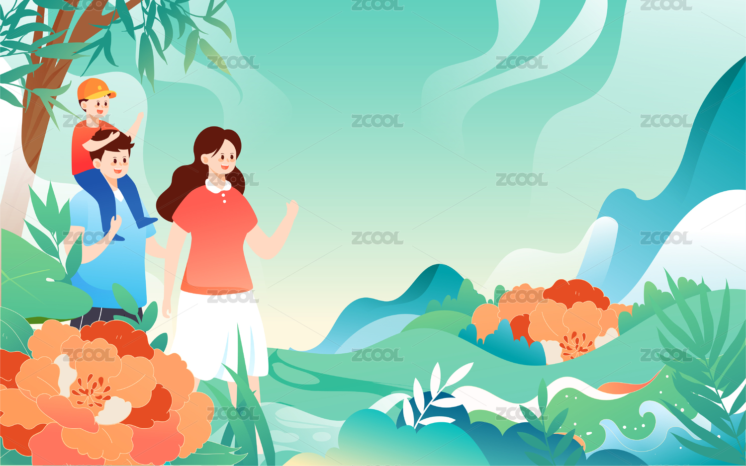 国庆节建党节喜庆红色建筑花卉人物科技强国国潮插画