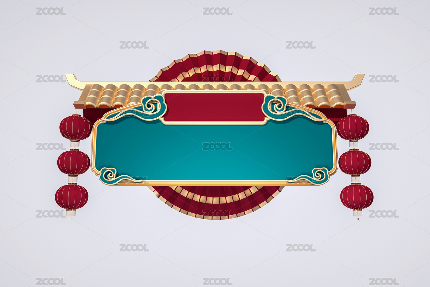 三维建模的国潮牌匾标题边框