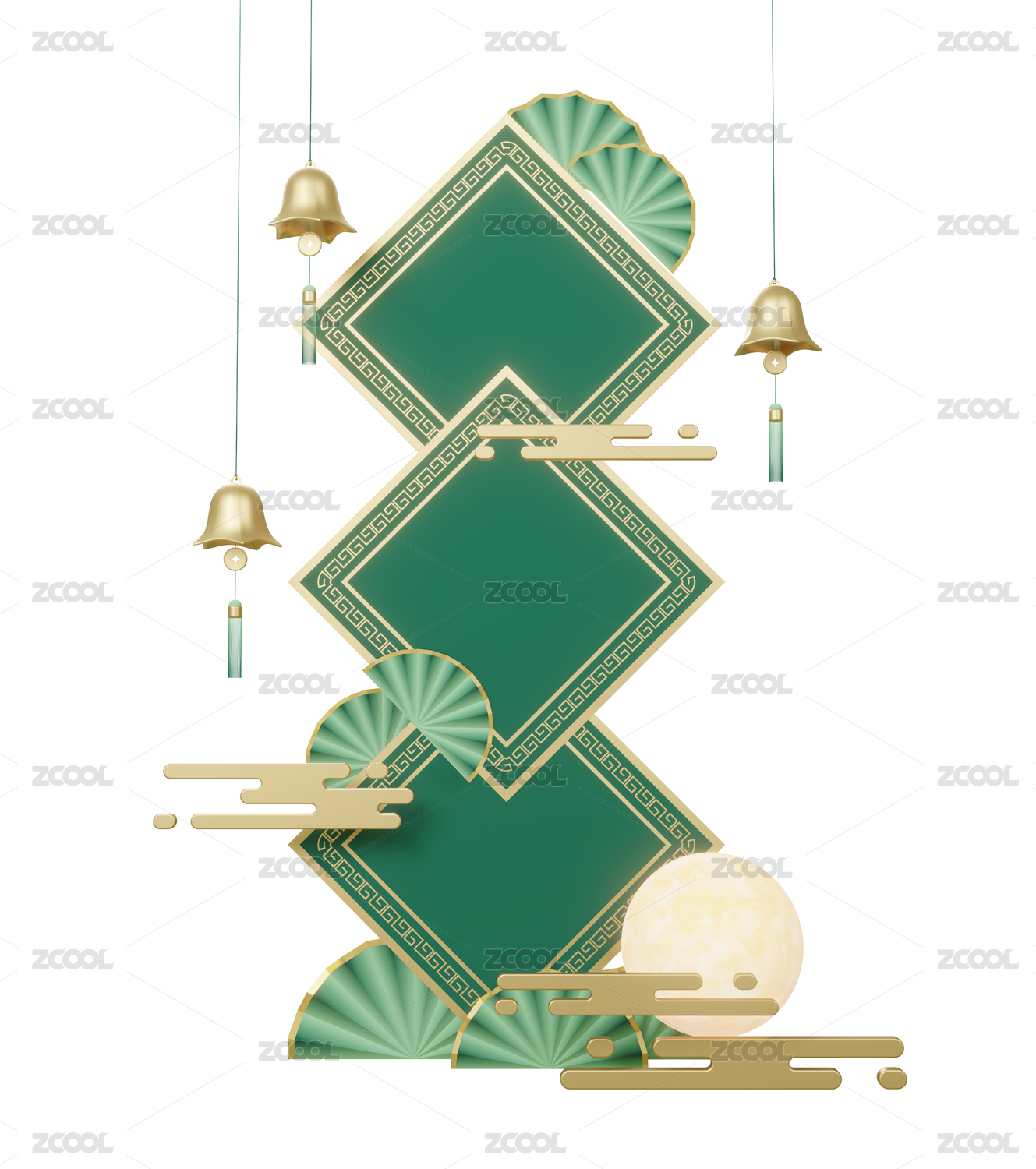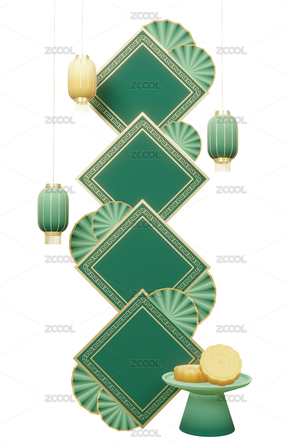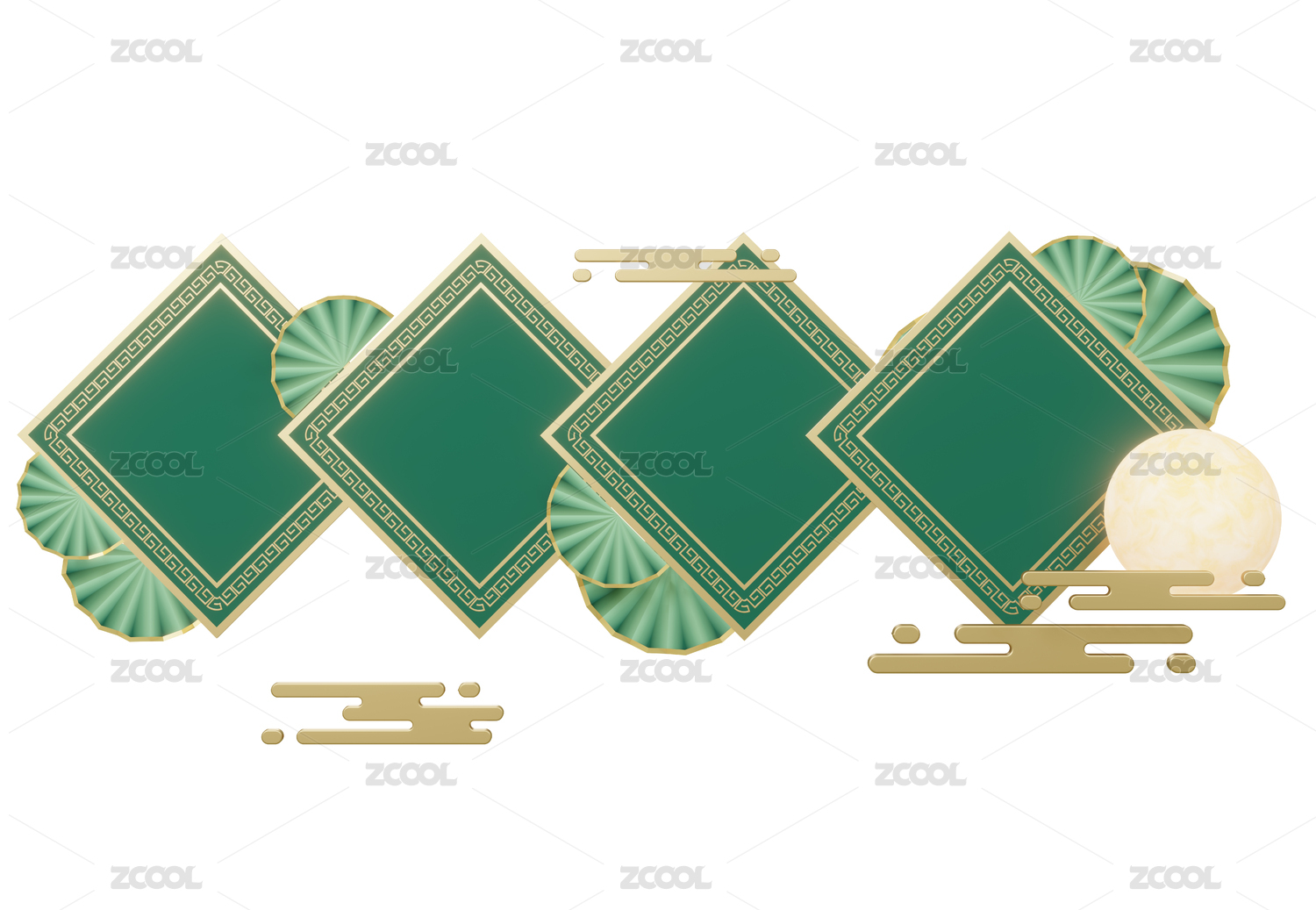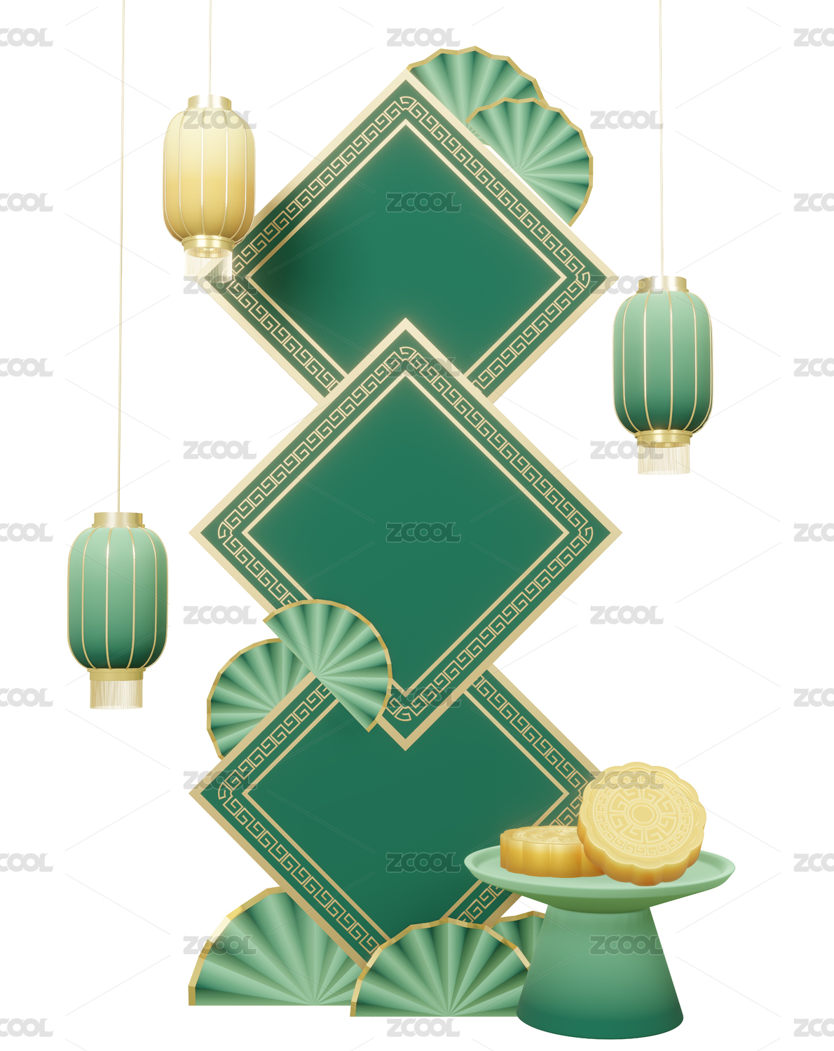 3d立体中国风传统中秋节月饼标题边框元素
