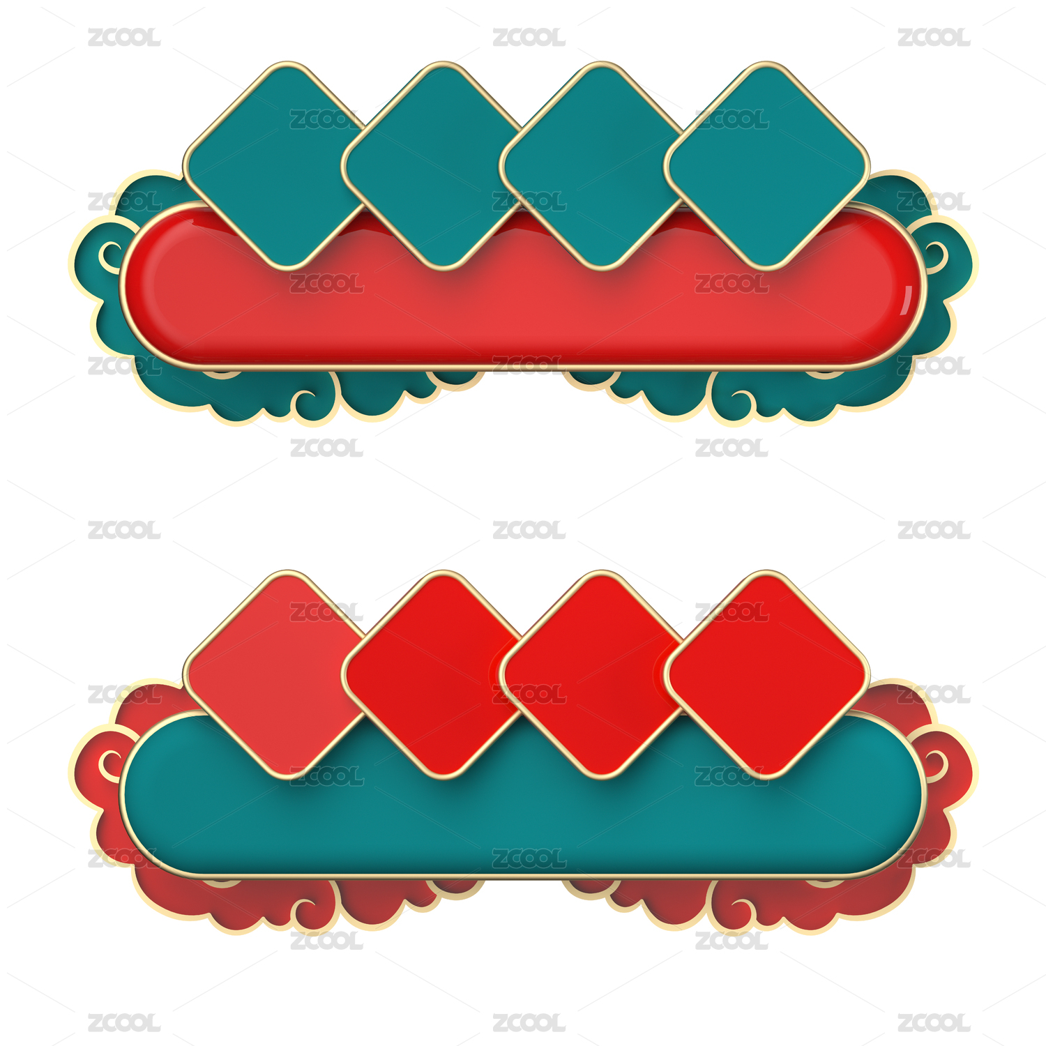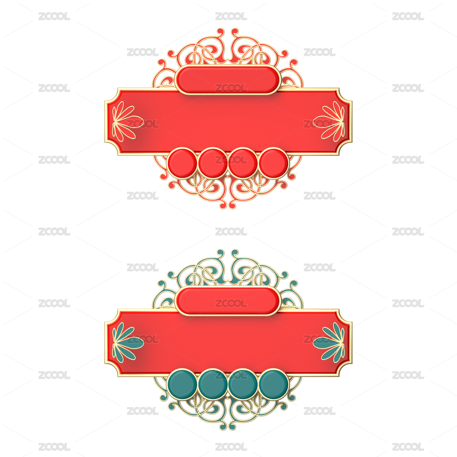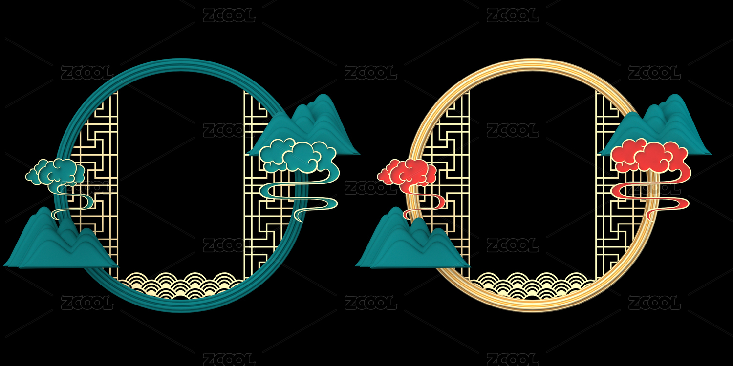 三维建模渲染的中国风标题边框