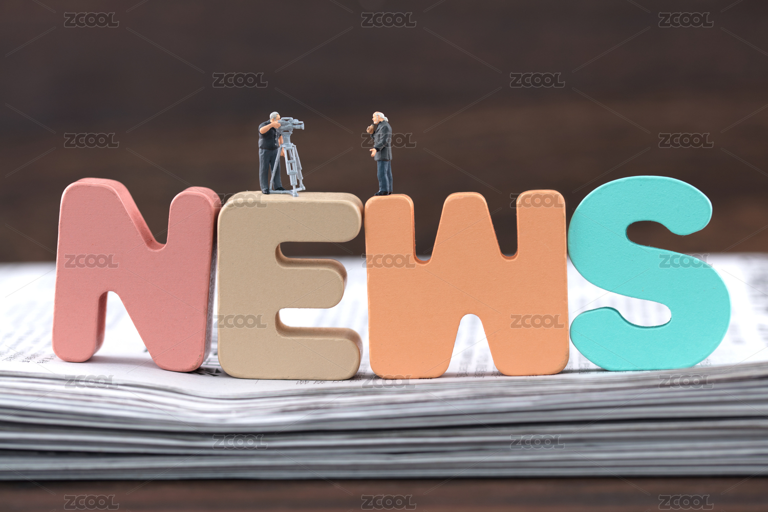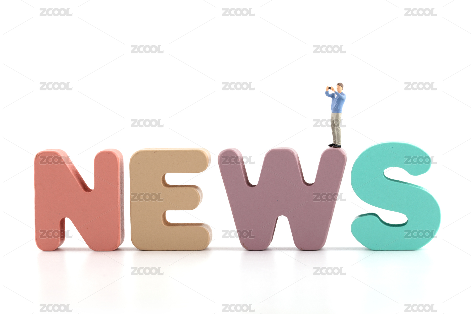 微缩创意马卡龙色字母看新闻看报纸的男性