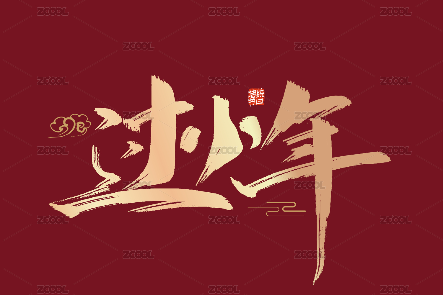 金色手写过小年字体设计