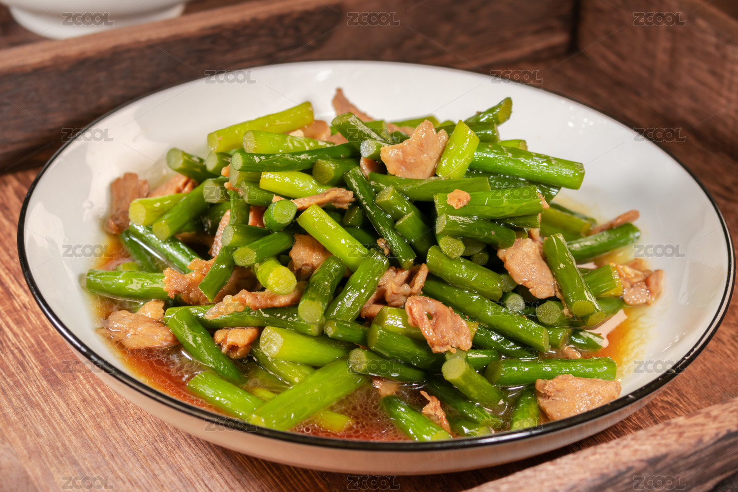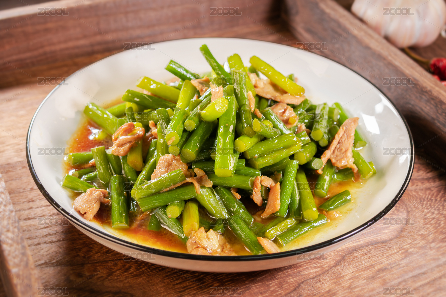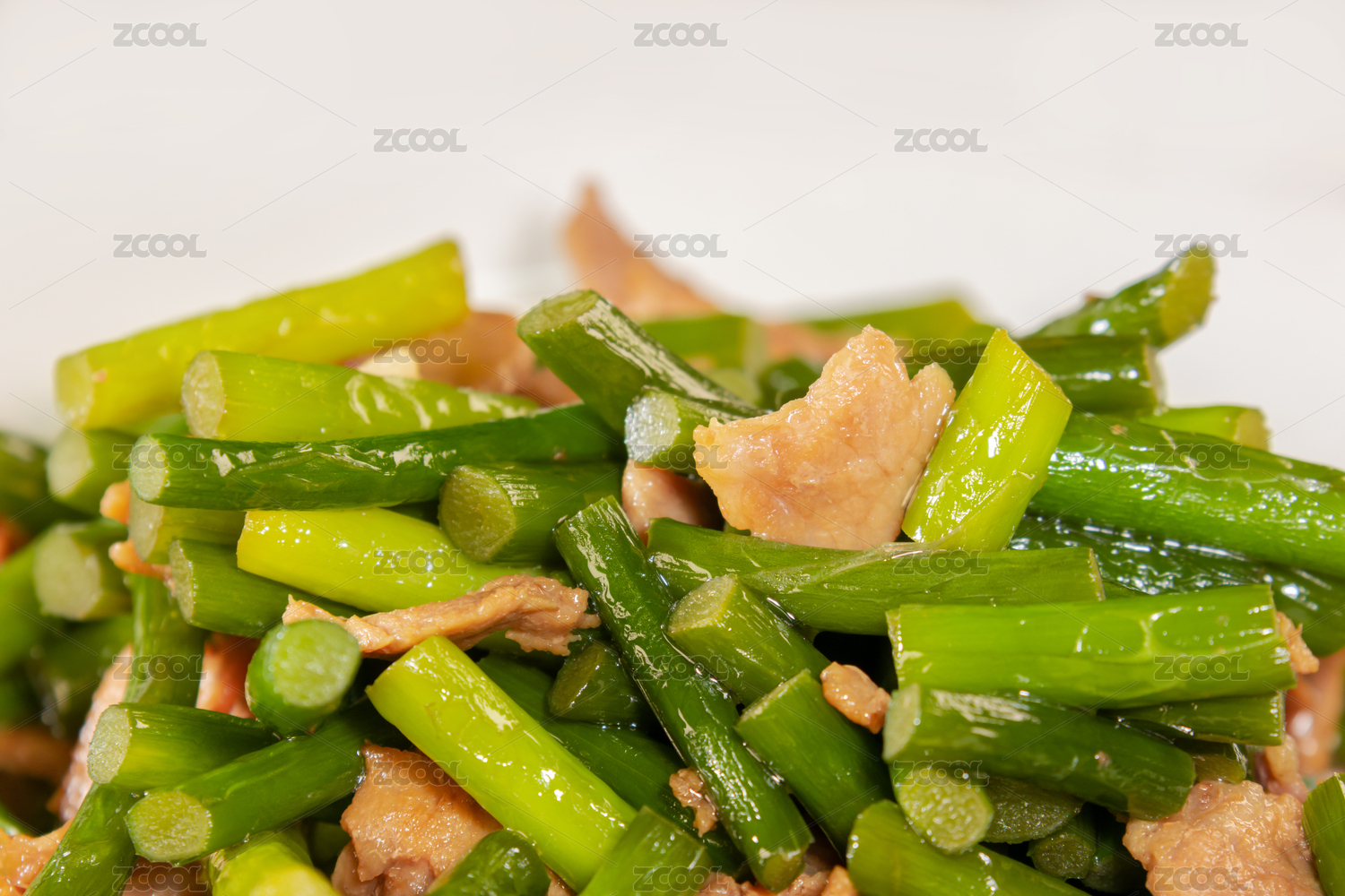 中式菜肴蒜苔炒肉
