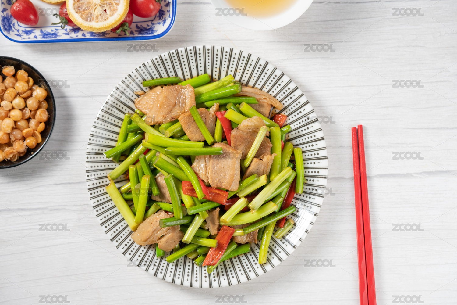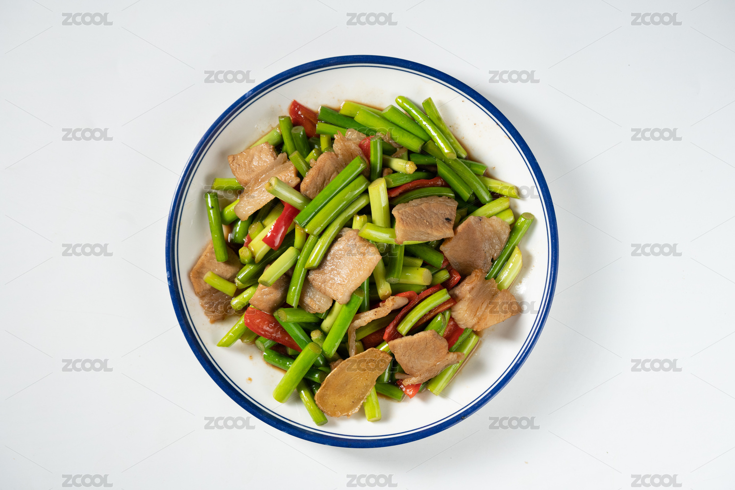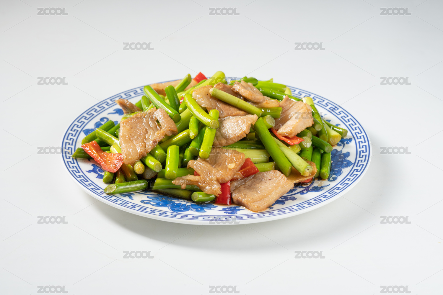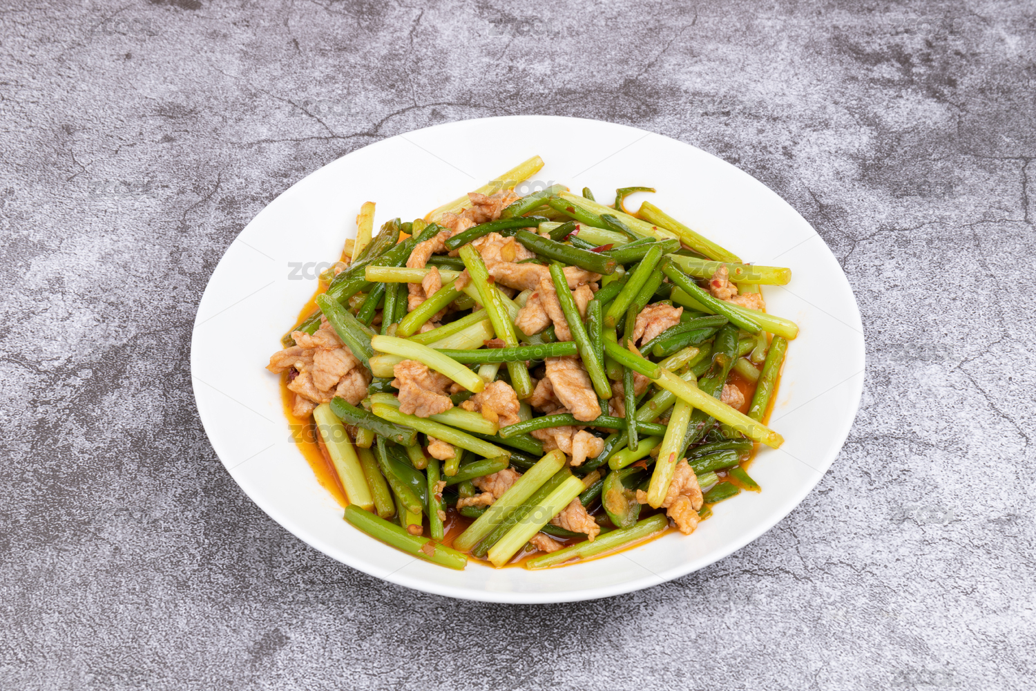 中式菜肴蒜苔炒肉