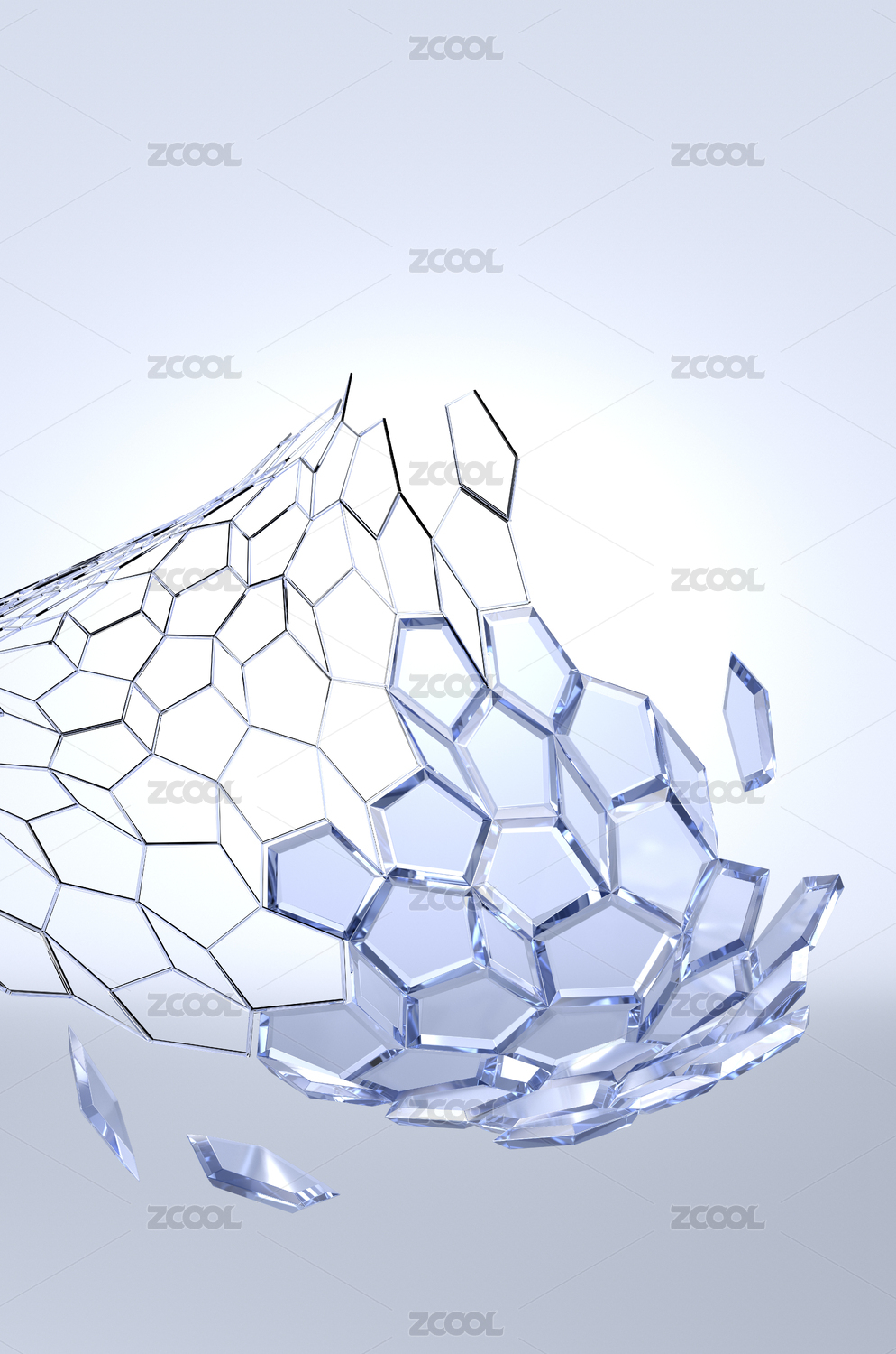 五边形的网状水晶玻璃片在灰色渐变背景