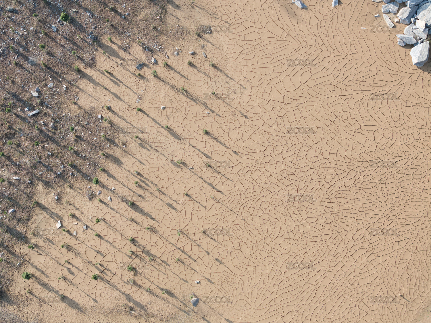 俯拍一片干涸的土地上的网状裂纹