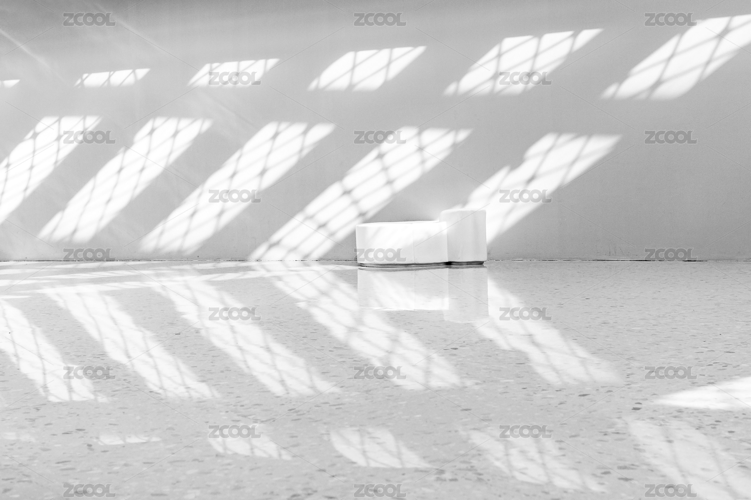 网状的窗户光照在了纯白的墙和地上