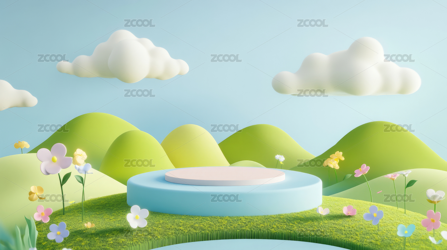 简约蓝色光滑流畅背景中的圆形产品展示台