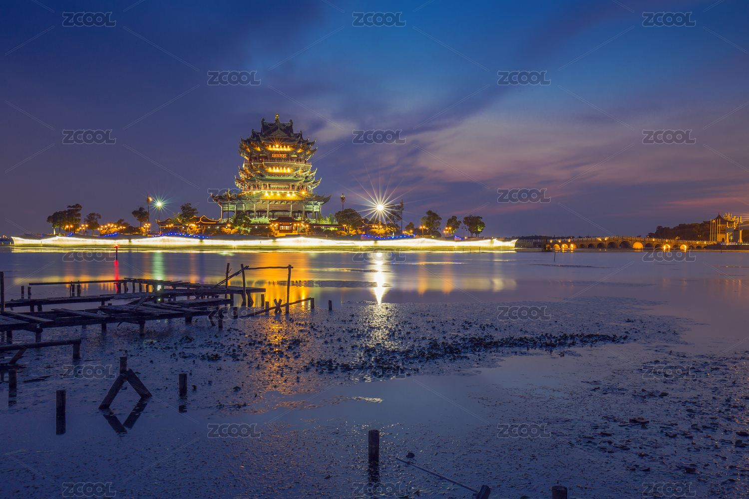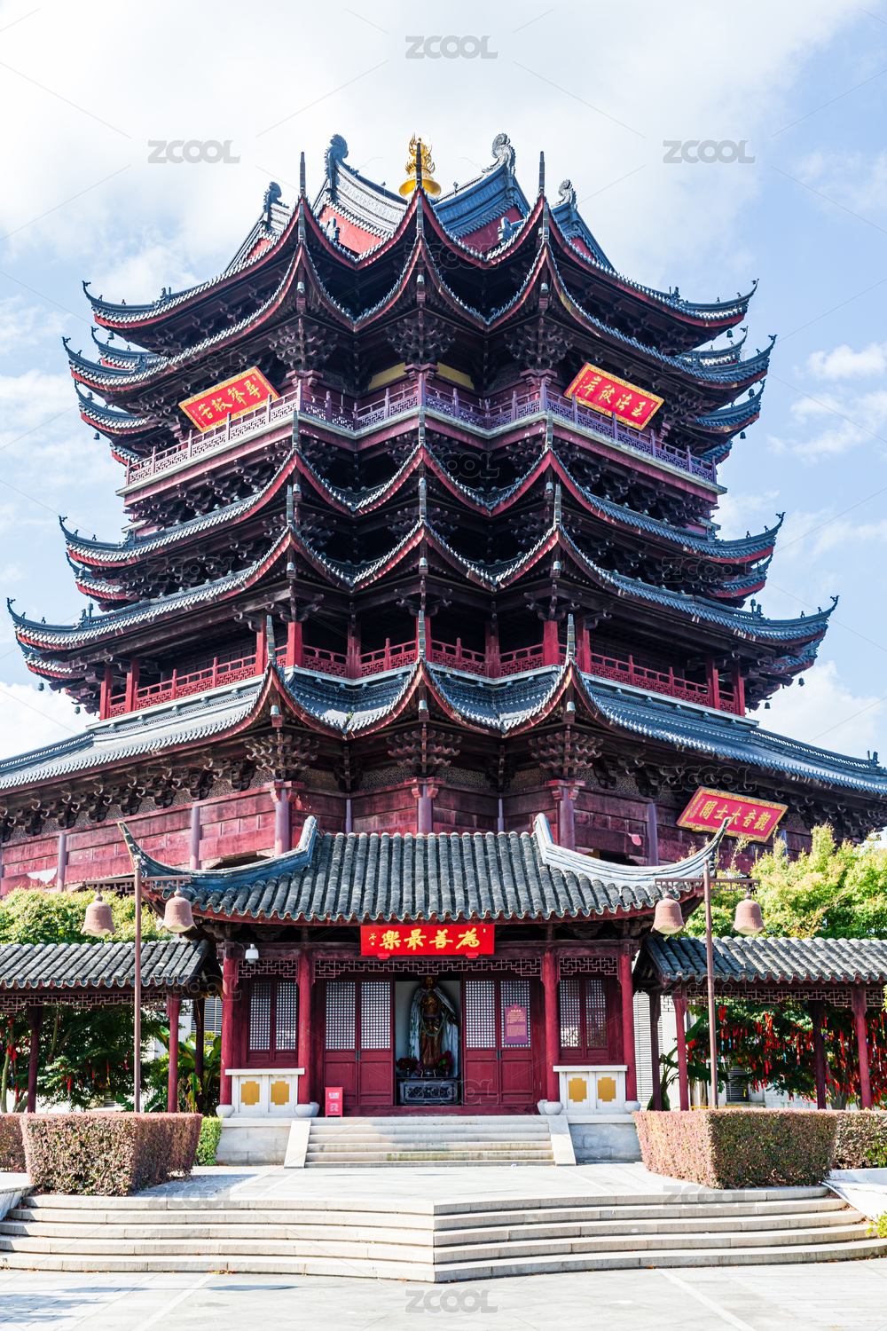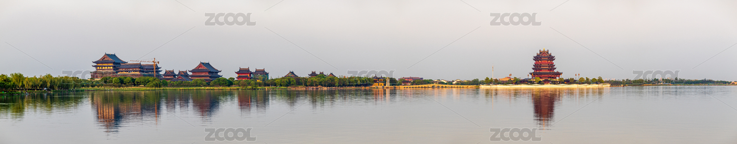 夕阳下的苏州阳澄湖重元寺观音大士阁