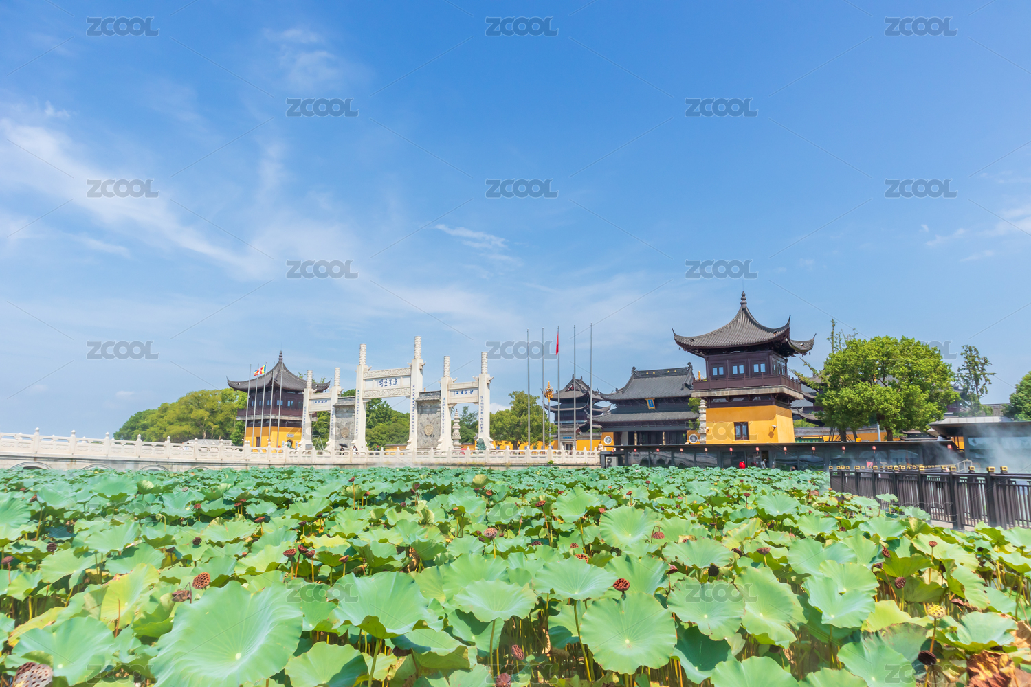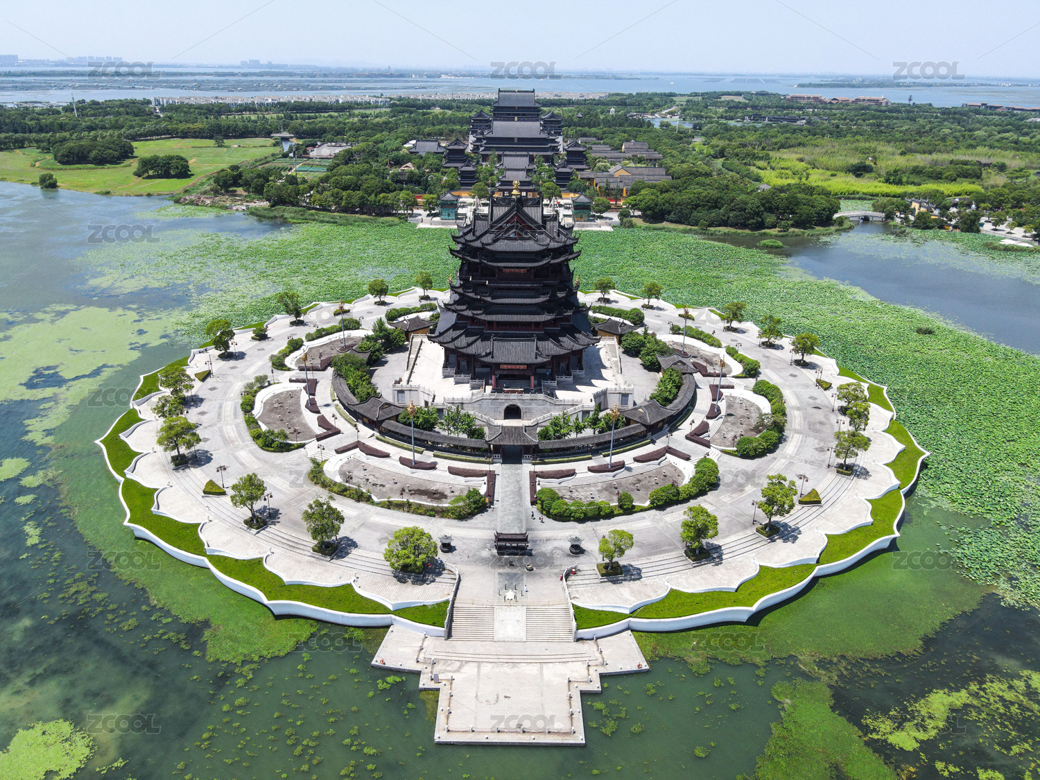 苏州阳澄湖重元寺夏季风光