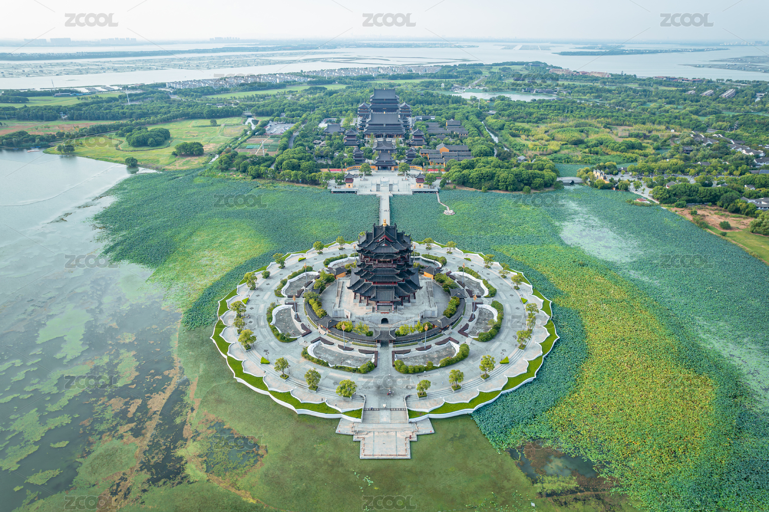 中国江苏苏州阳澄湖重元寺航拍