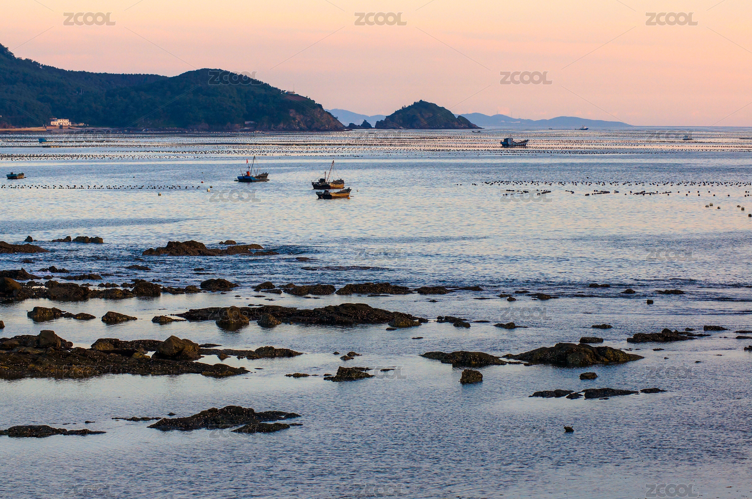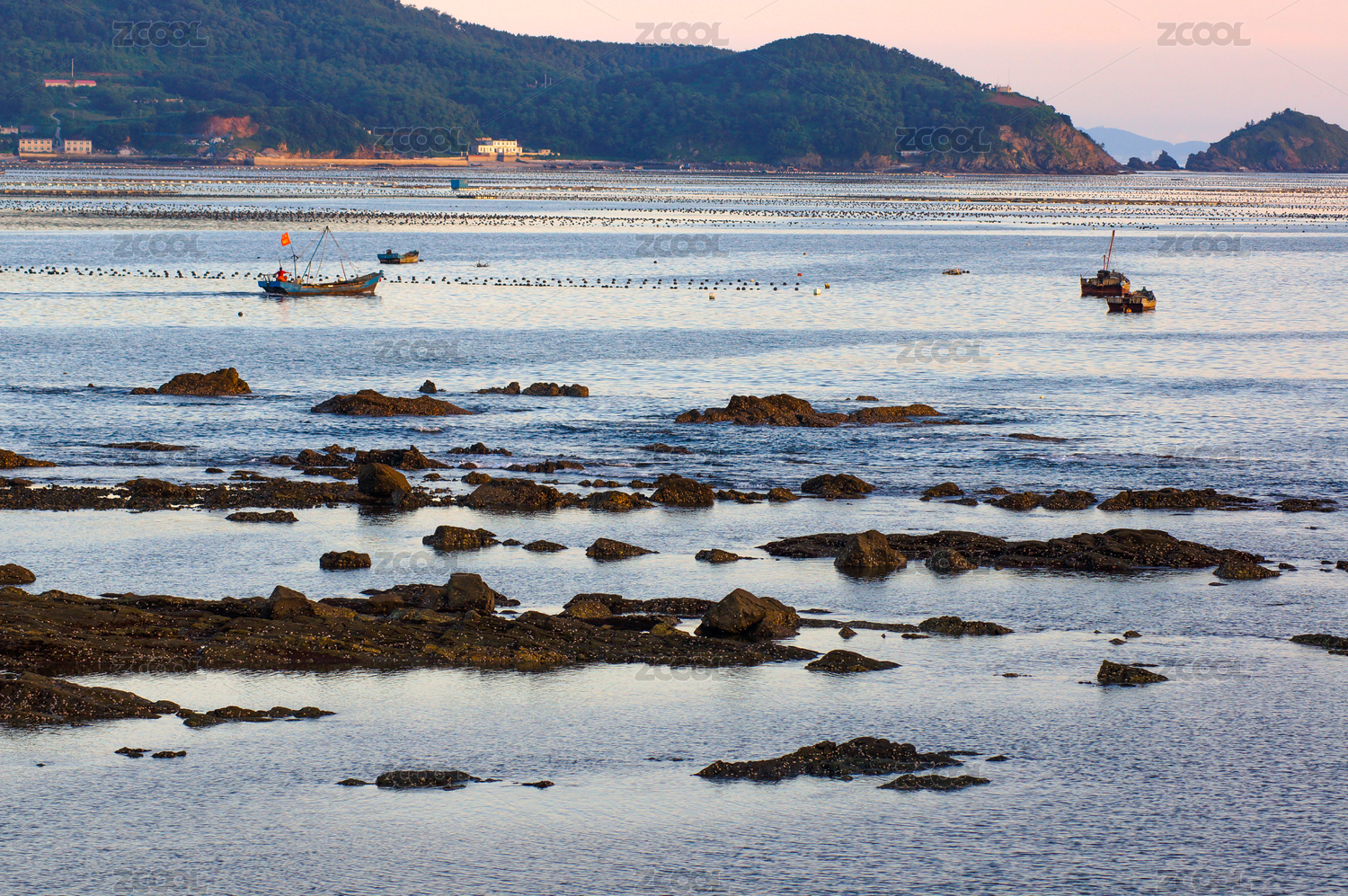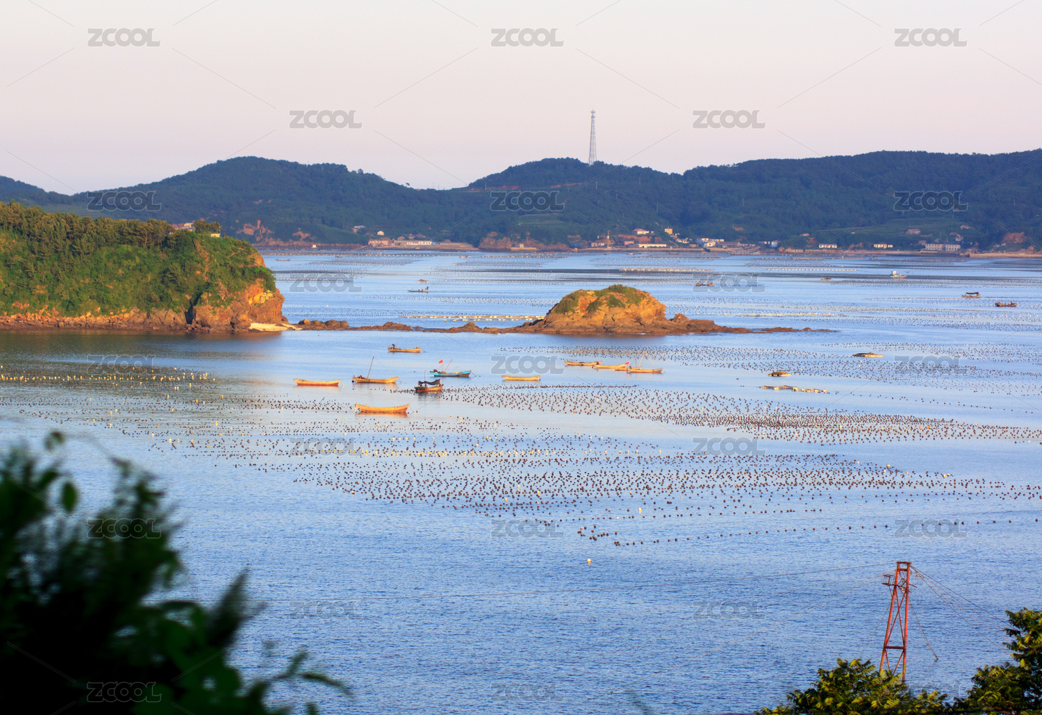 大连小长山岛海上养殖场傍晚风光