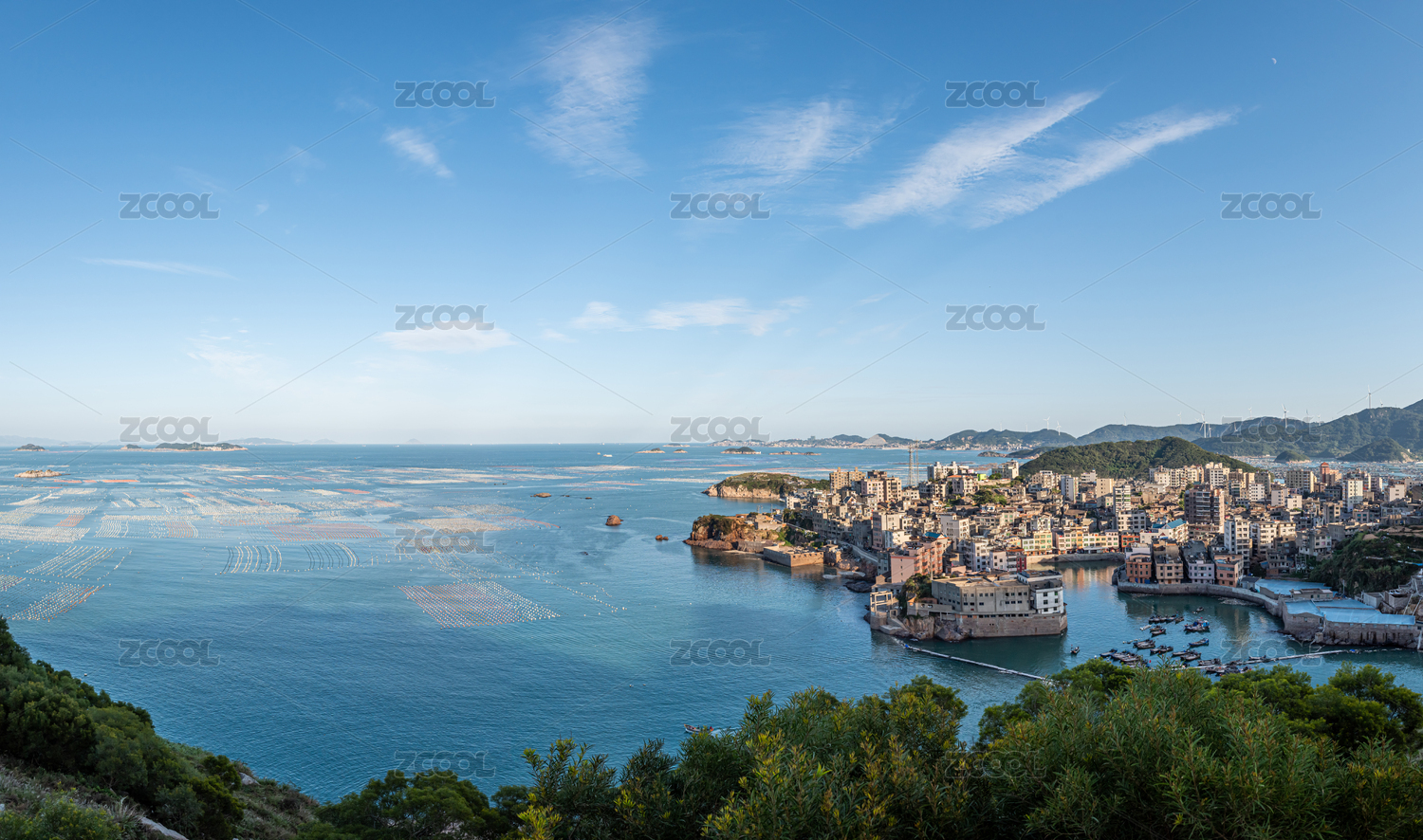 福州奇达村海上养殖场和风力发电机