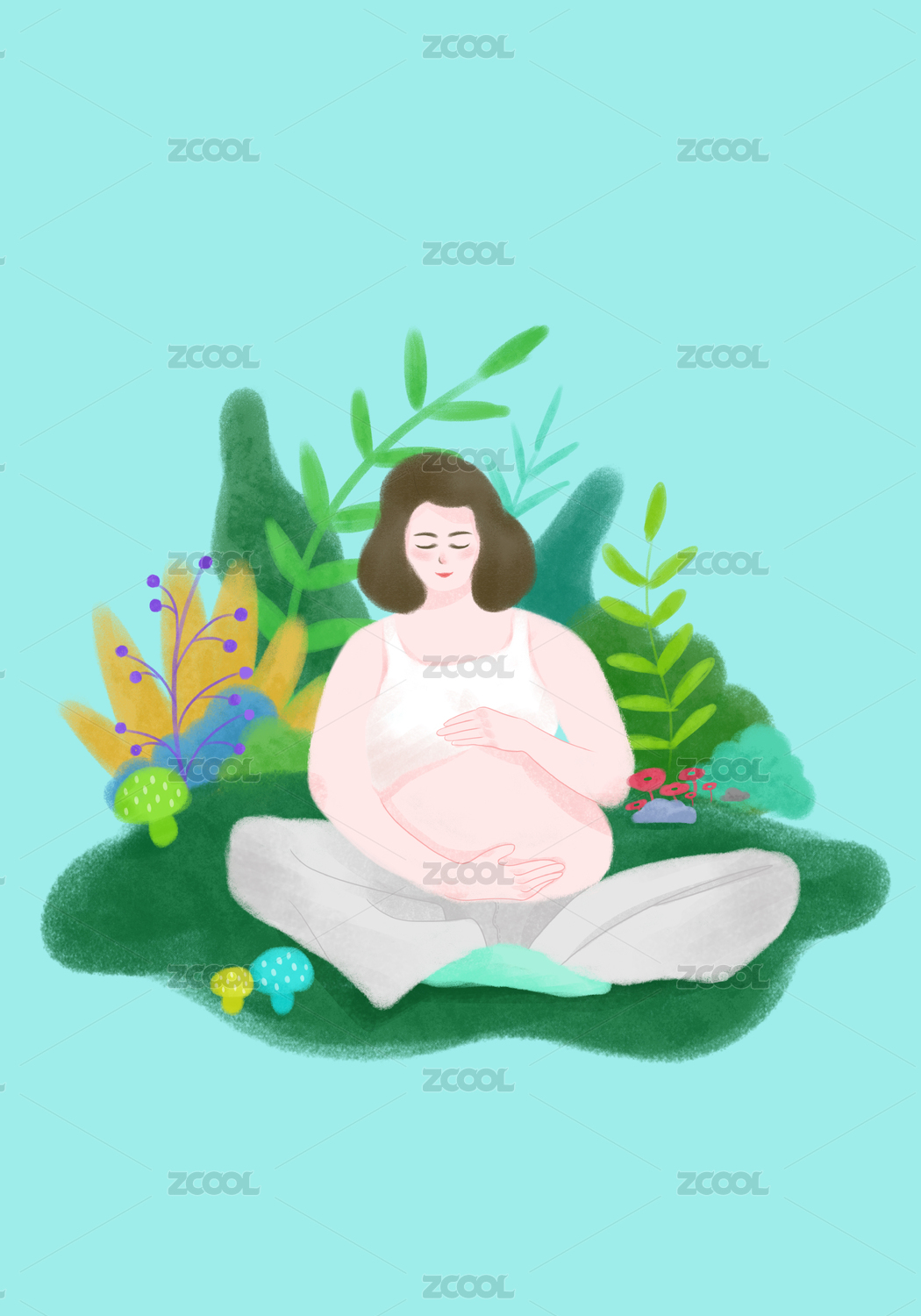 手绘孕妇手托着孕肚插画