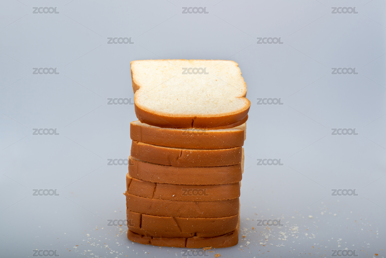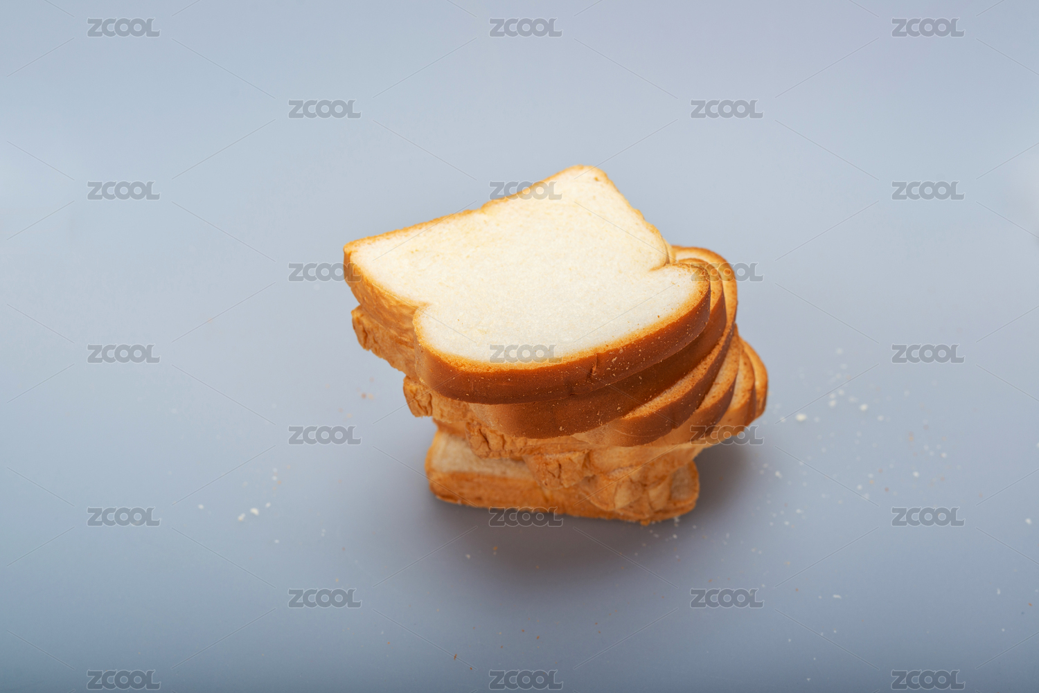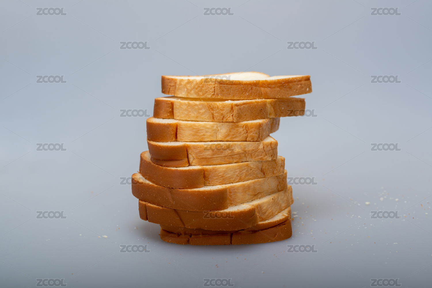 纯色背景下堆放的切片面包