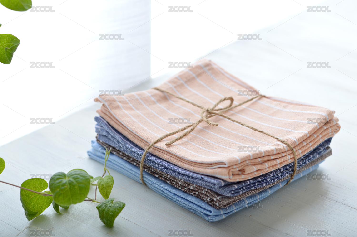 叠放的浅绿色毛巾