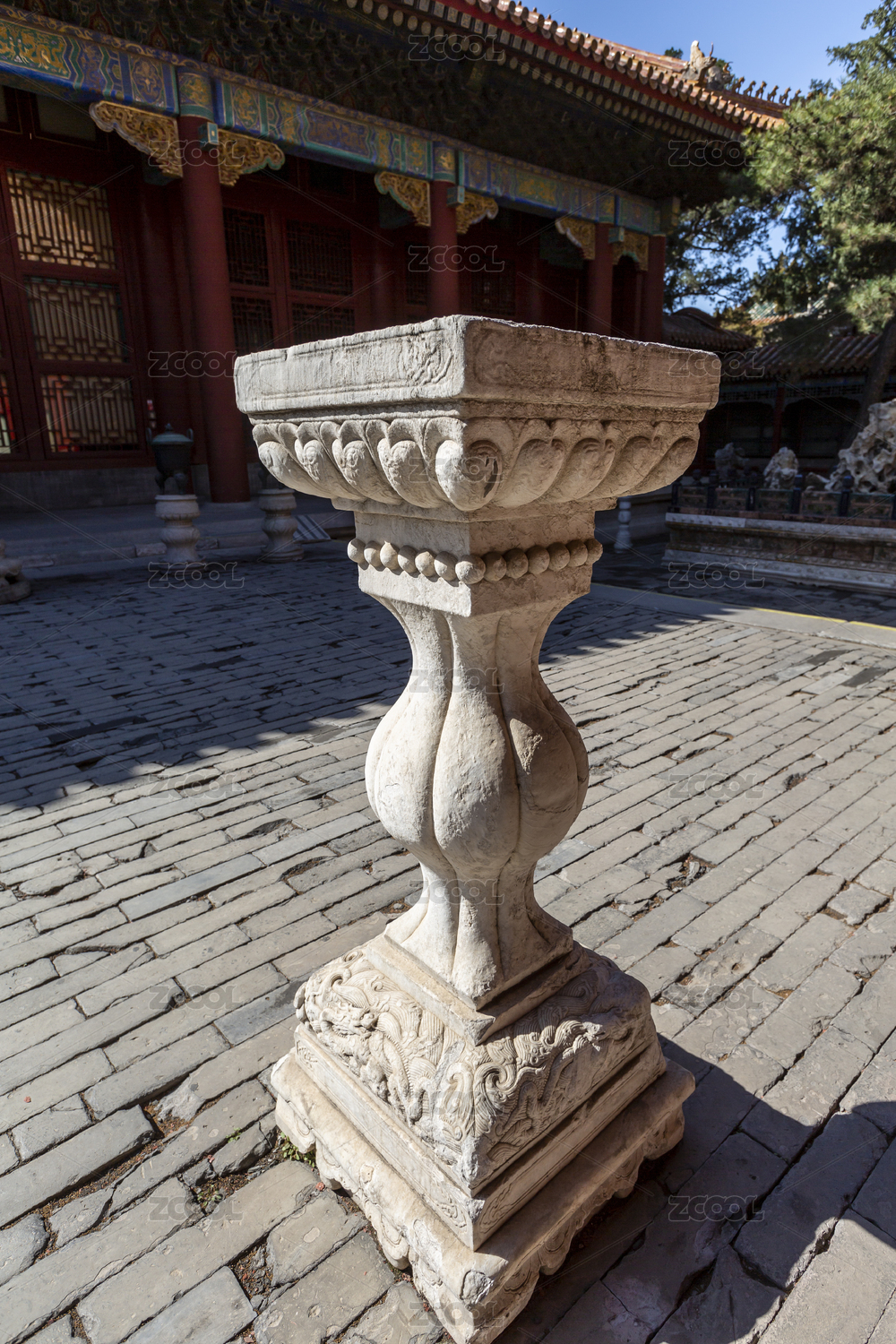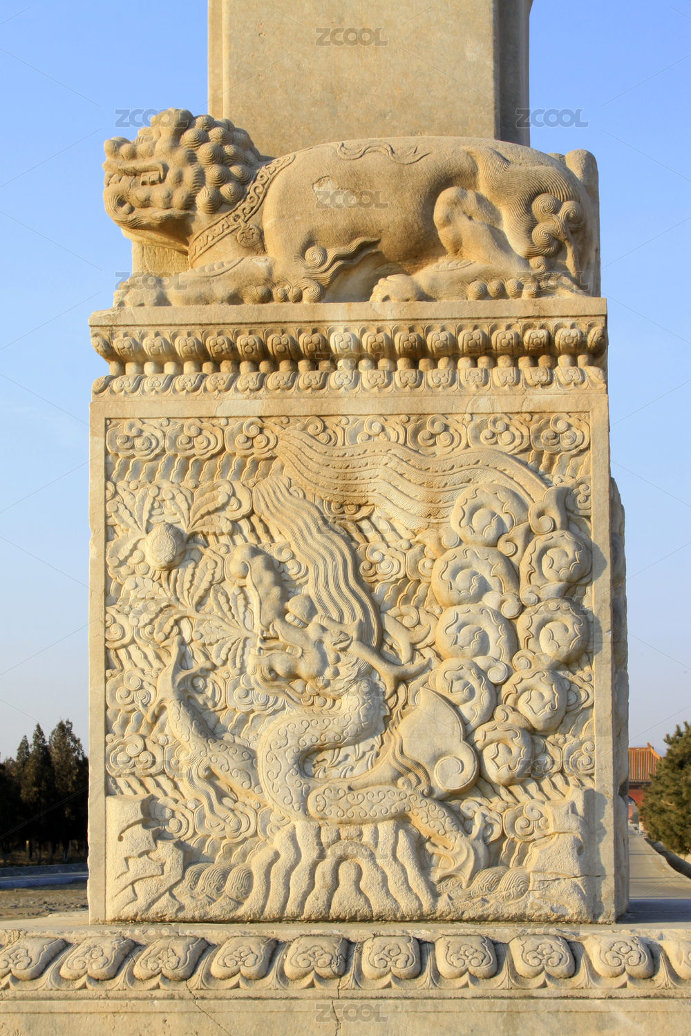 石雕瑞兽与纹饰基座