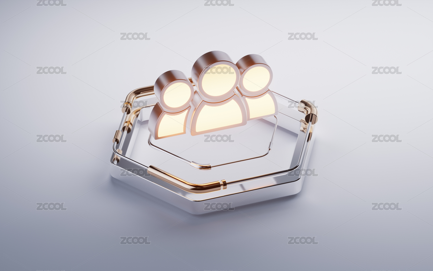 商务人员符号与金属六边形基座三维渲染