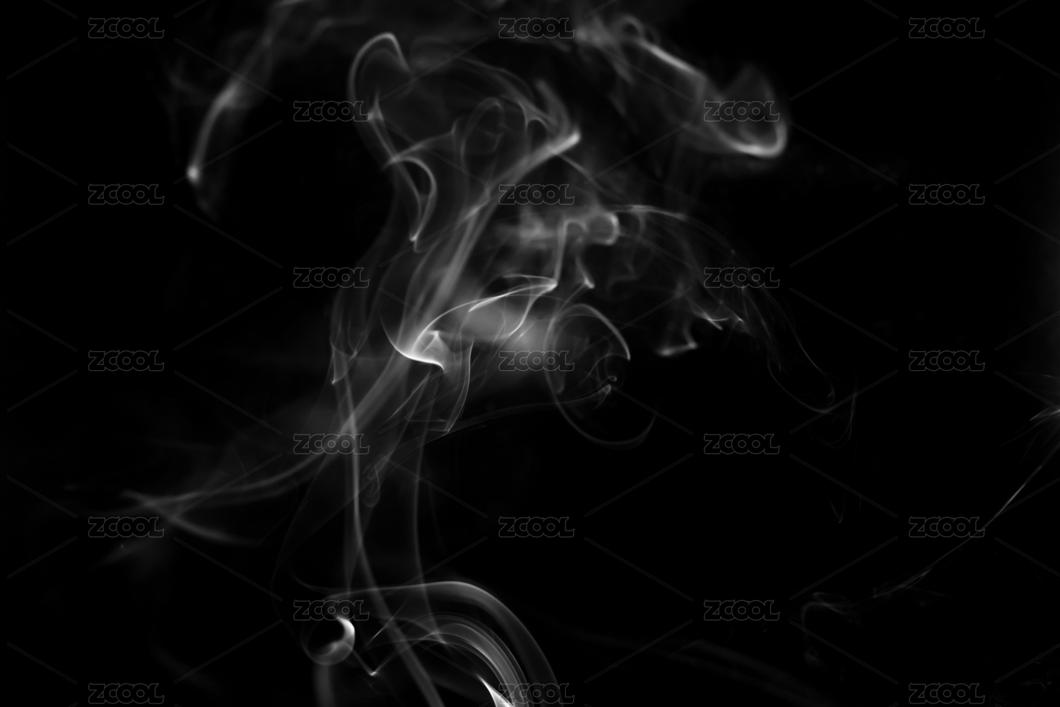 黑色背景下白色的徐徐腾起的烟雾