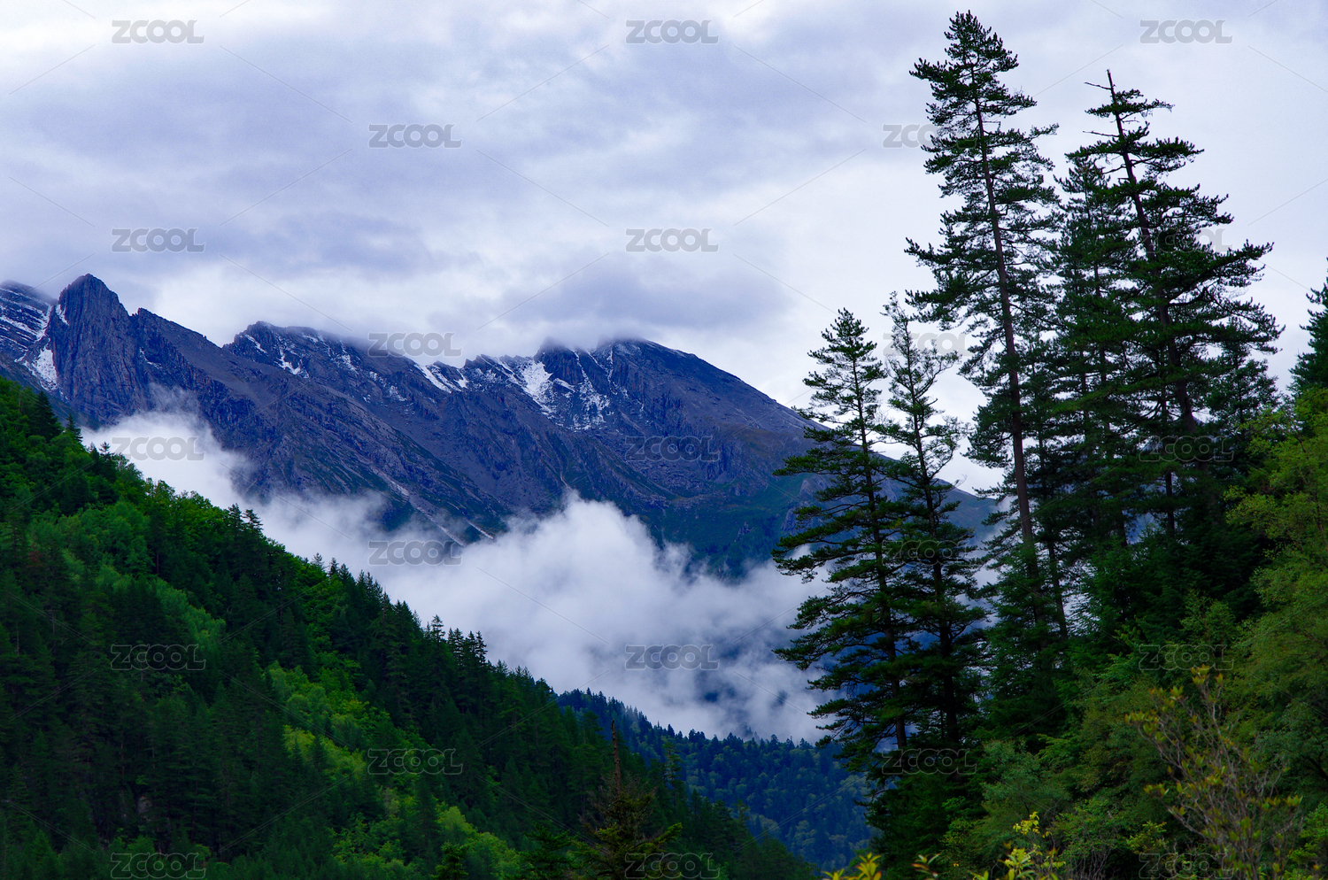 四川九寨沟雪山和原始森林