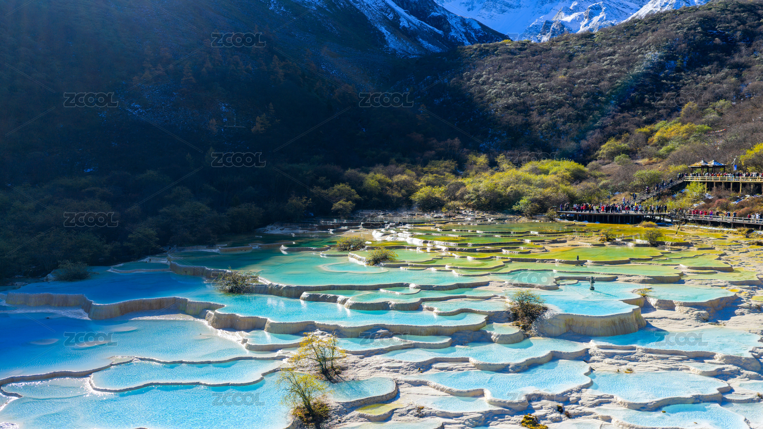中国四川阿坝州黄龙景区钙化池风光