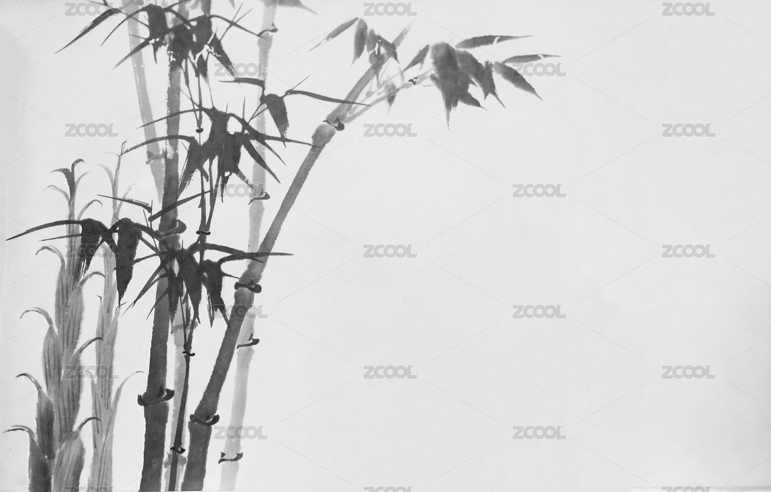 中国风意境水墨山水风景画 写意淡雅中国水墨竹叶画