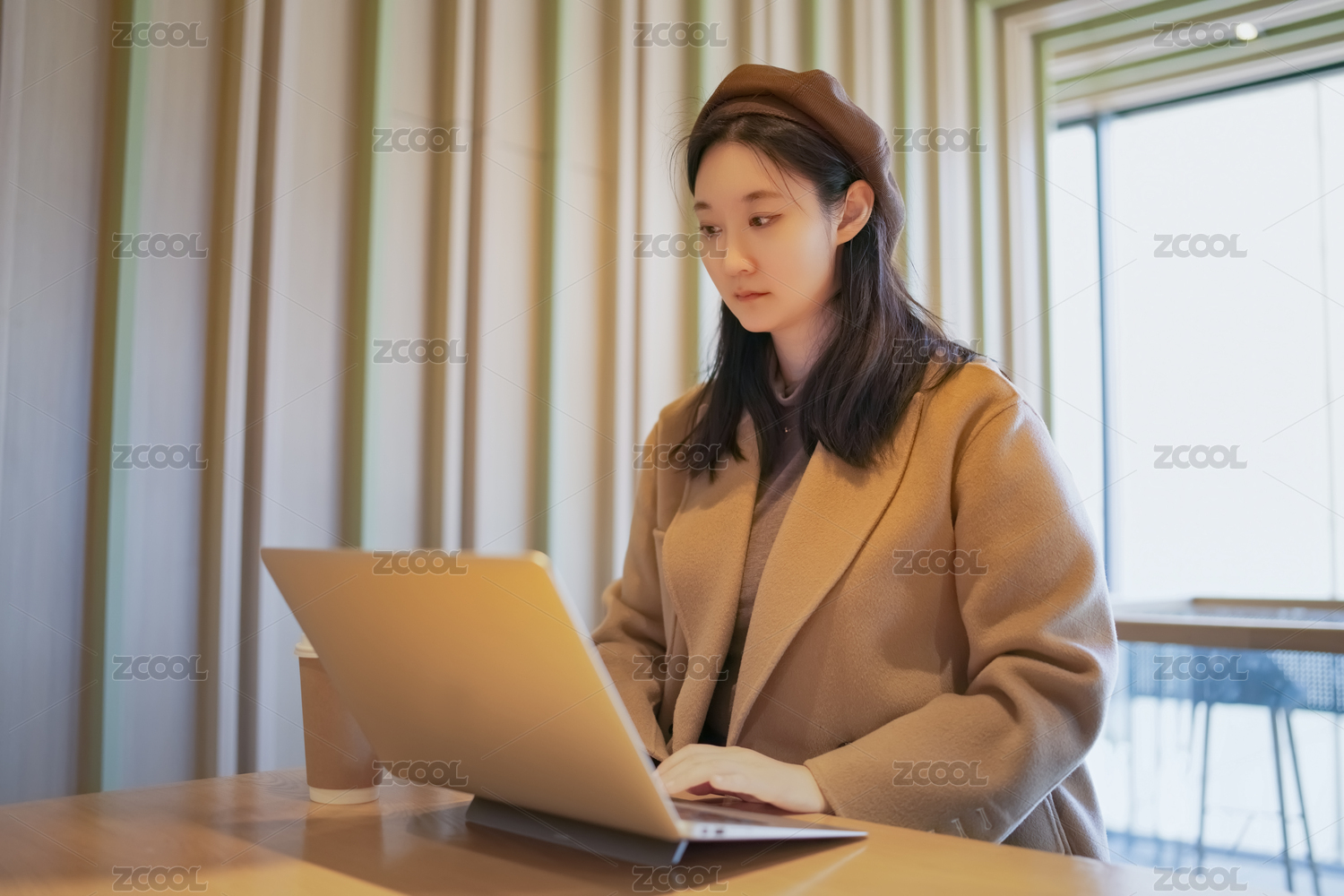 在咖啡馆工作的年轻专业人士