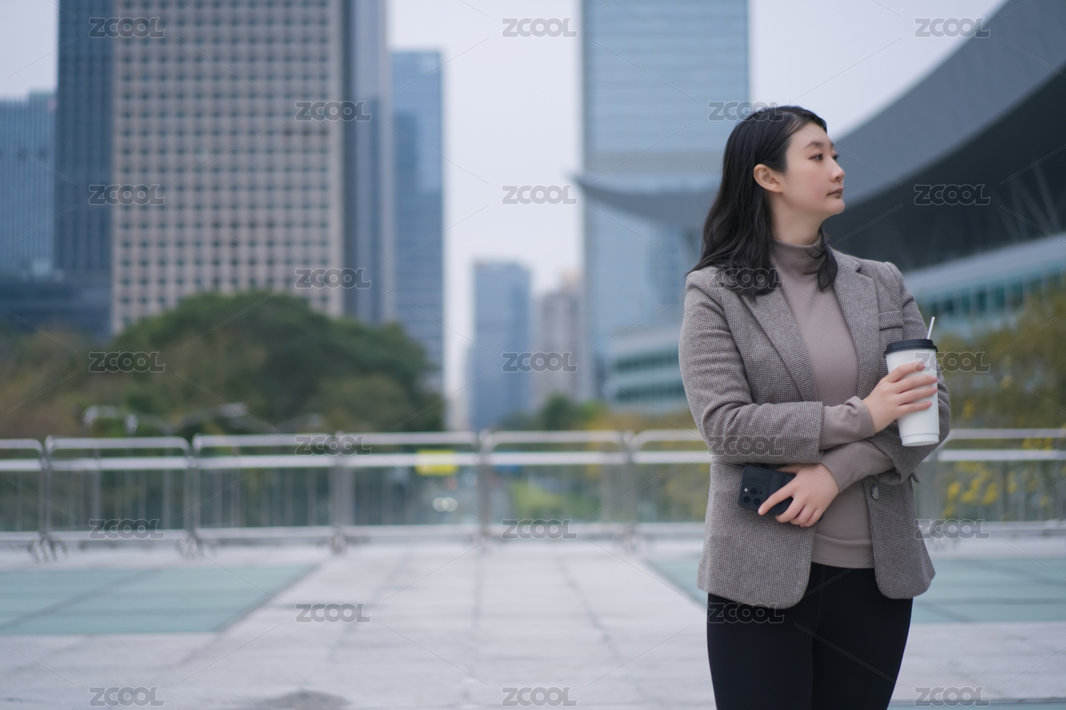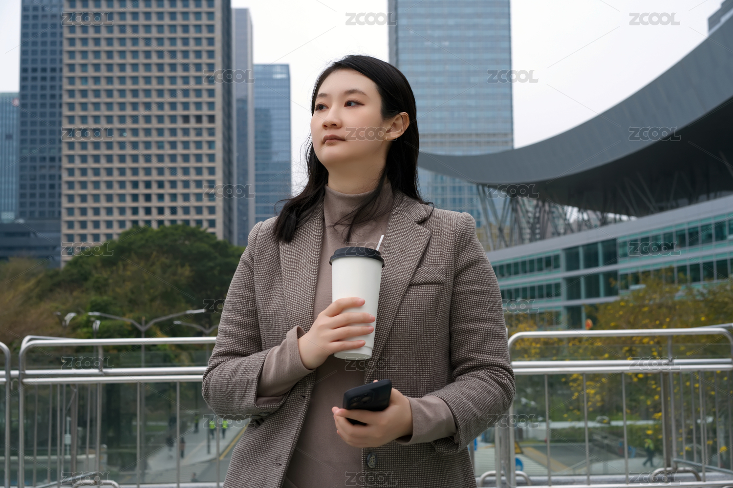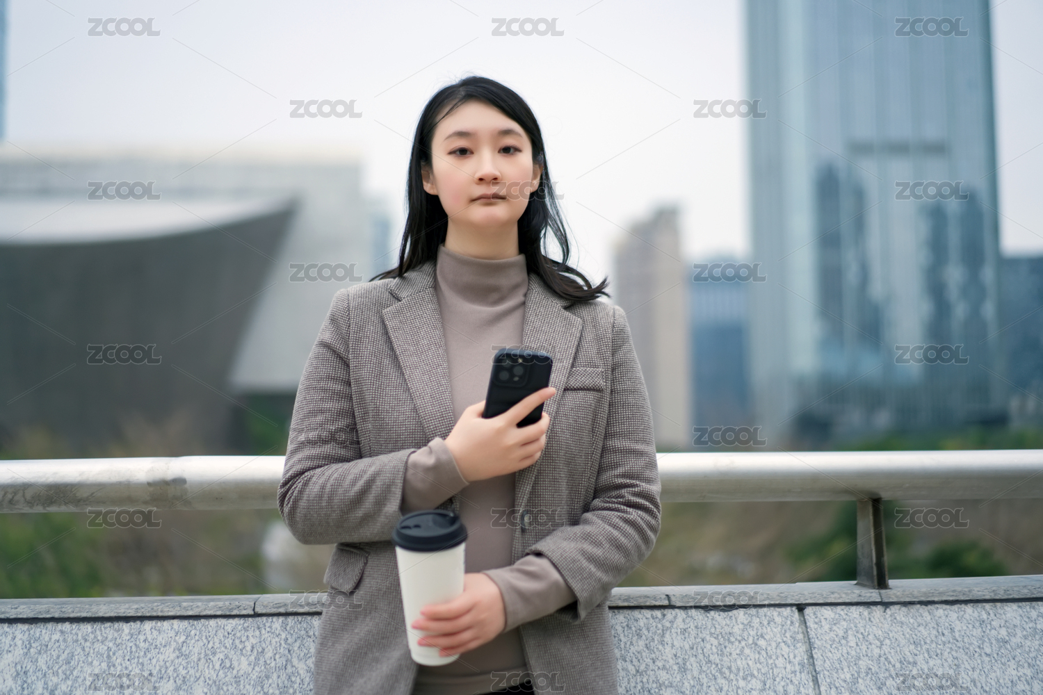 年轻的专业人士在城市中享受咖啡休息