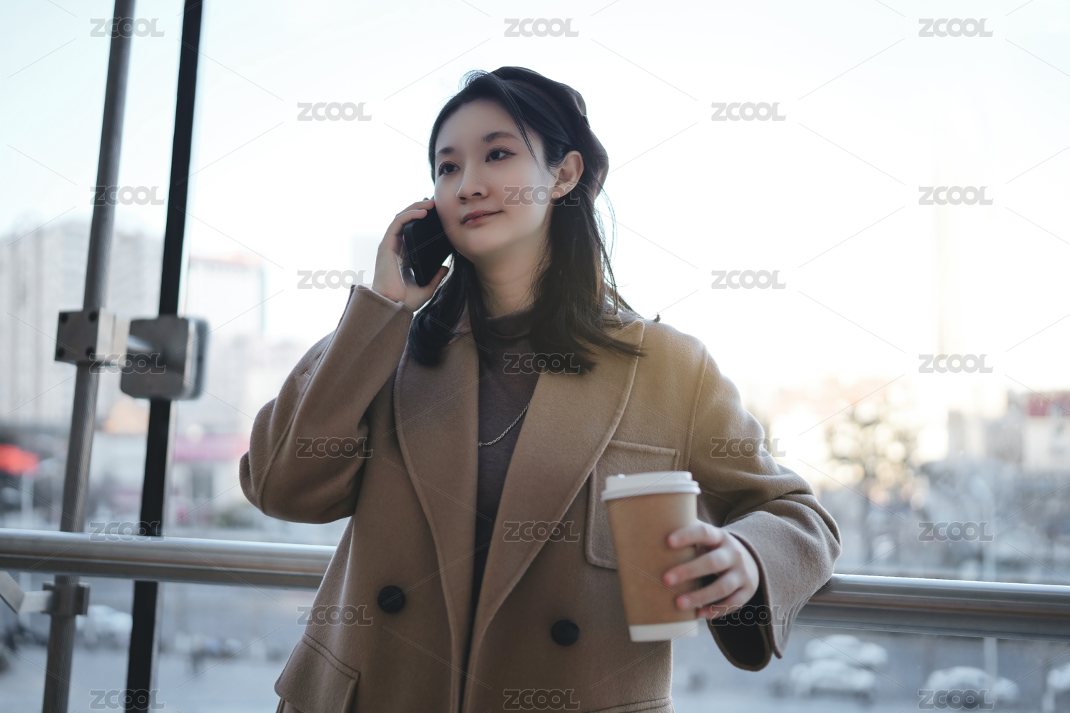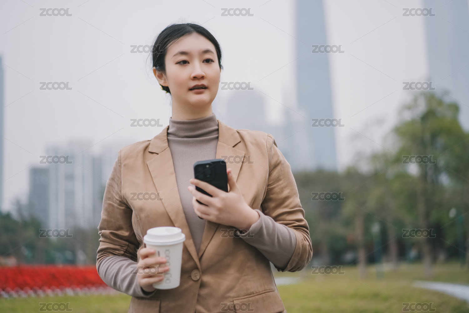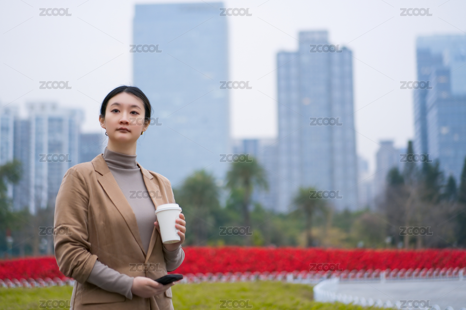 年轻的专业人士在城市中享受咖啡休息