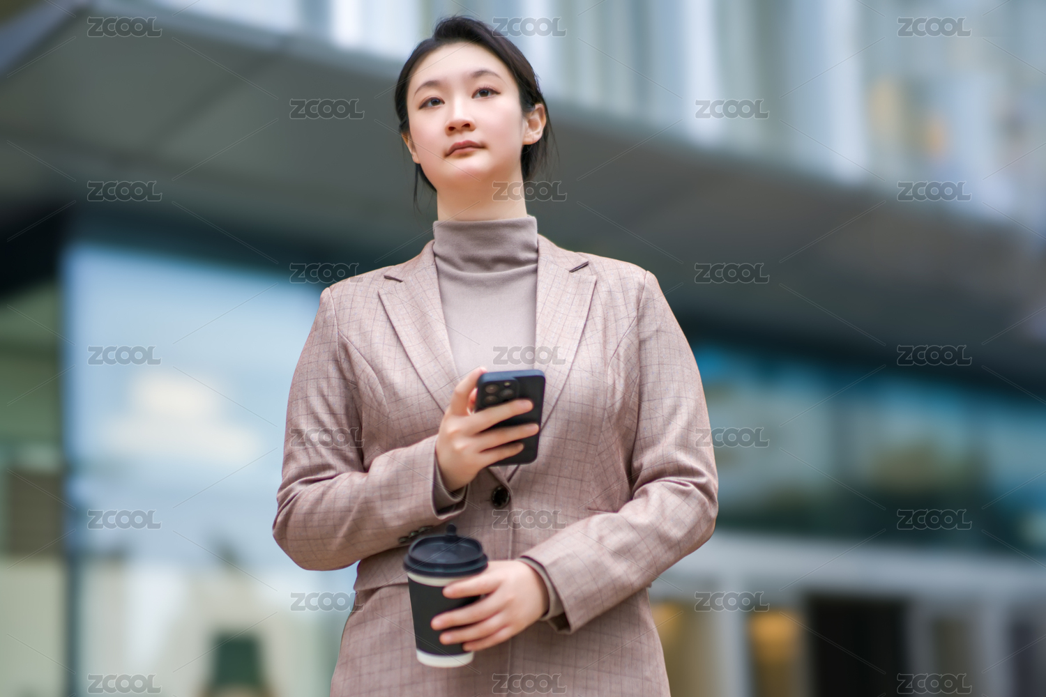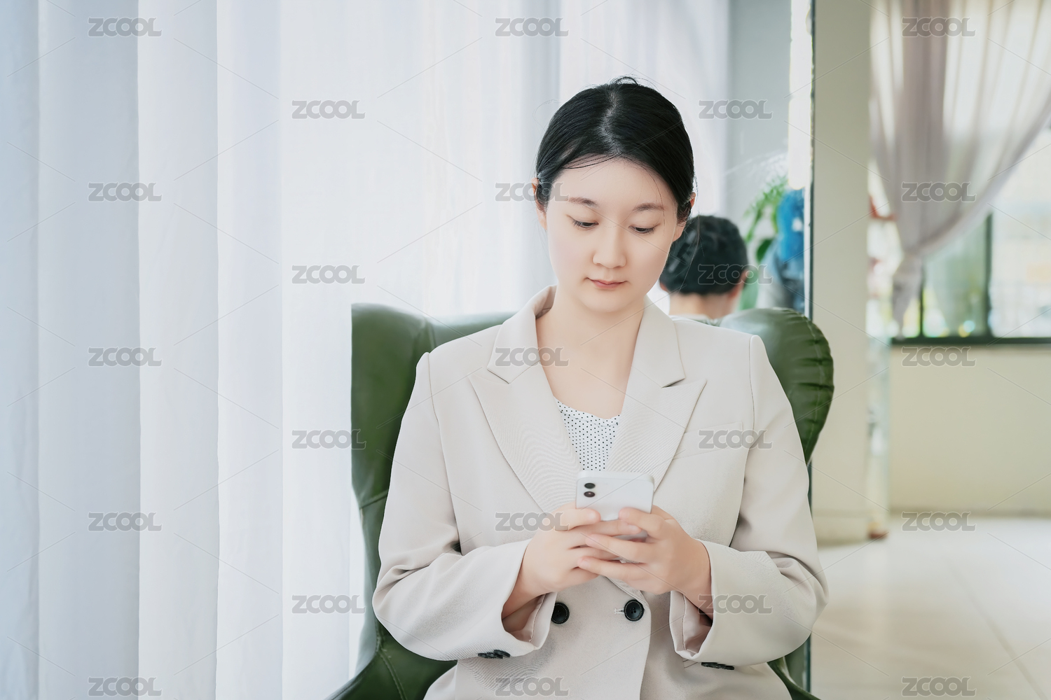 年轻女商人在工作中使用手机