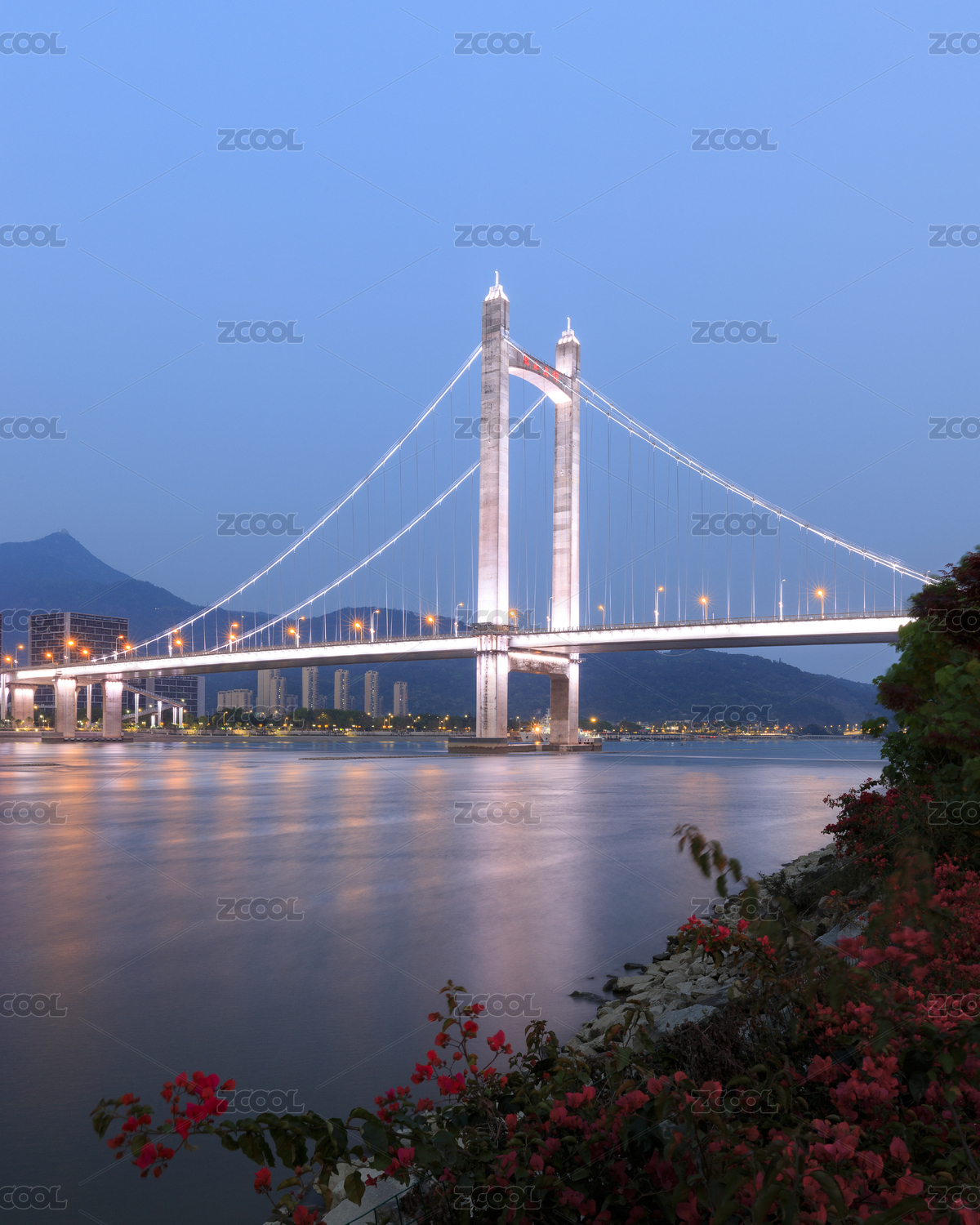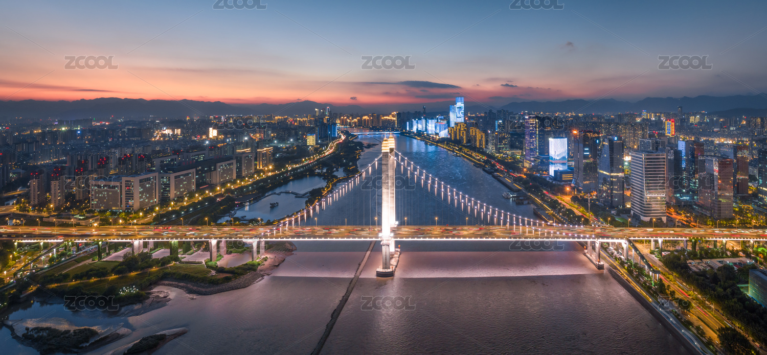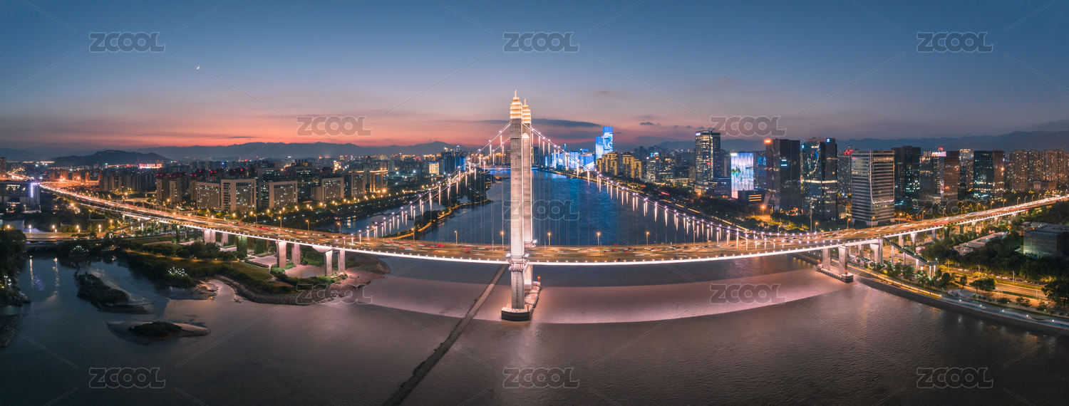 福州江滨鼓山大桥城市交通运输夜景天际线