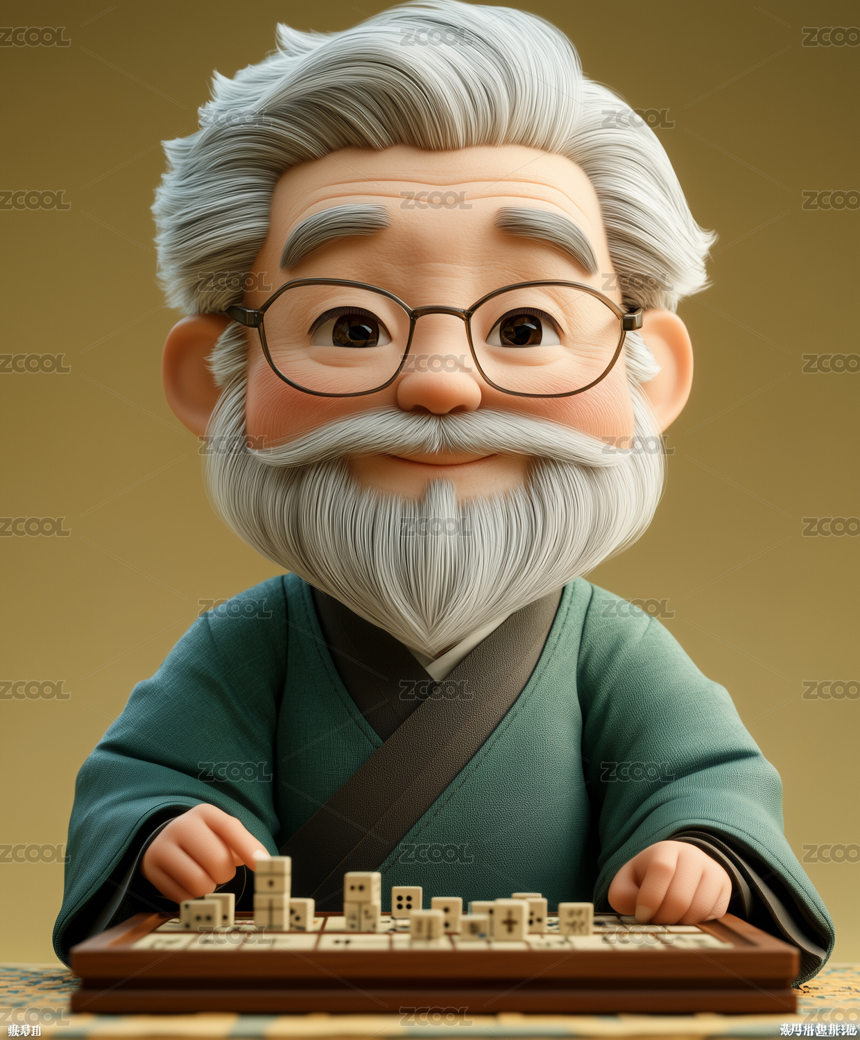 3D立体卡通老年看书
