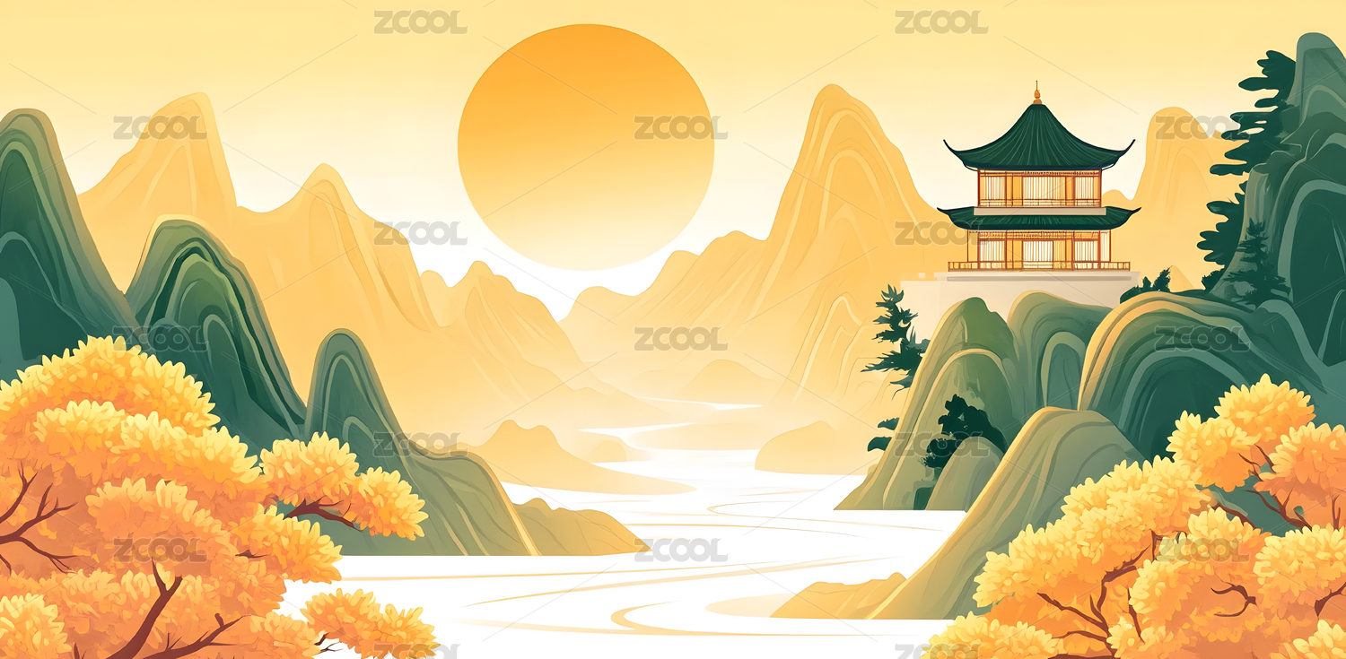 传统节日重阳节登高风景插画
