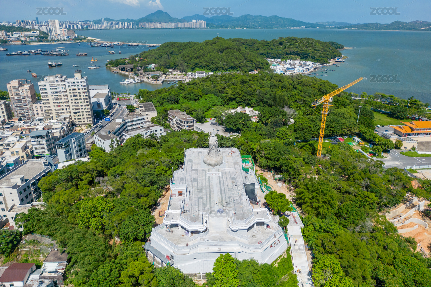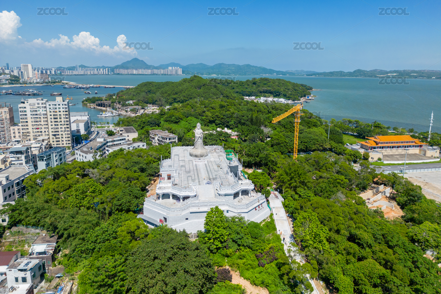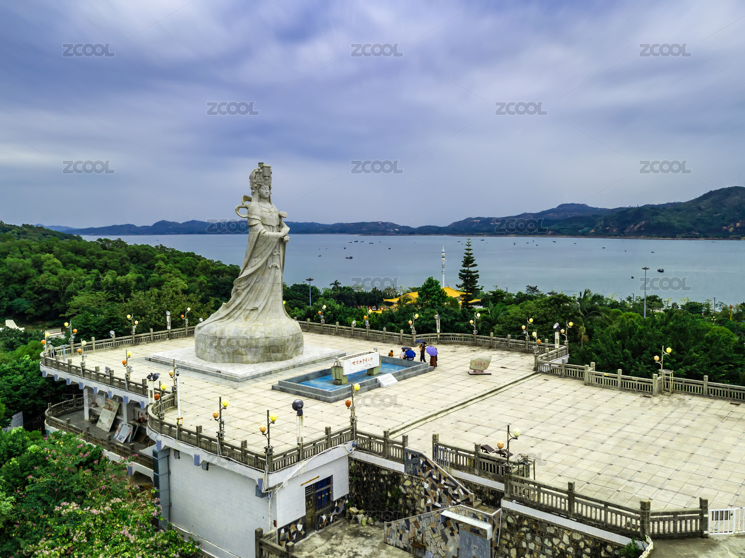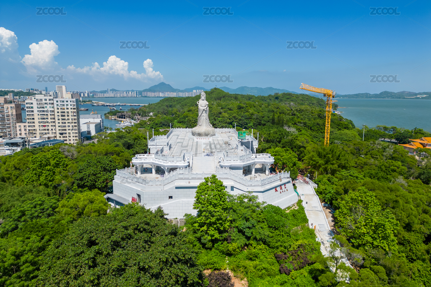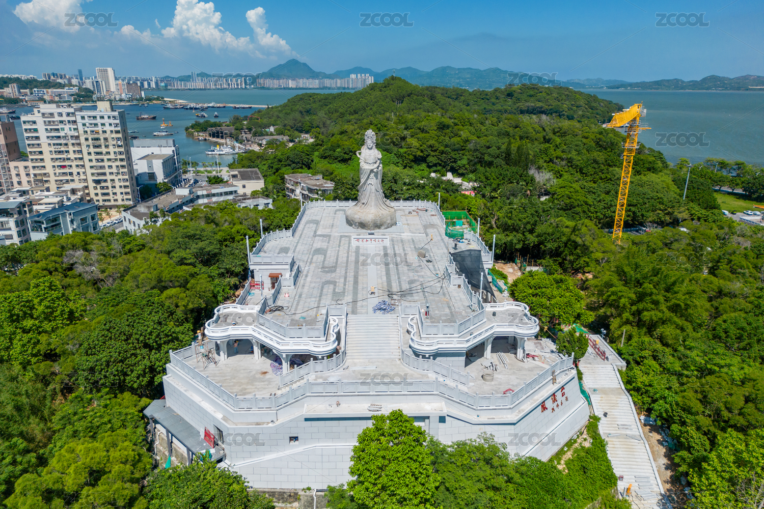 中国广东汕尾凤山祖庙旅游区妈祖石像航拍