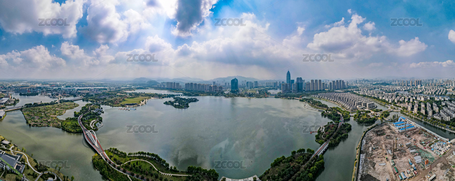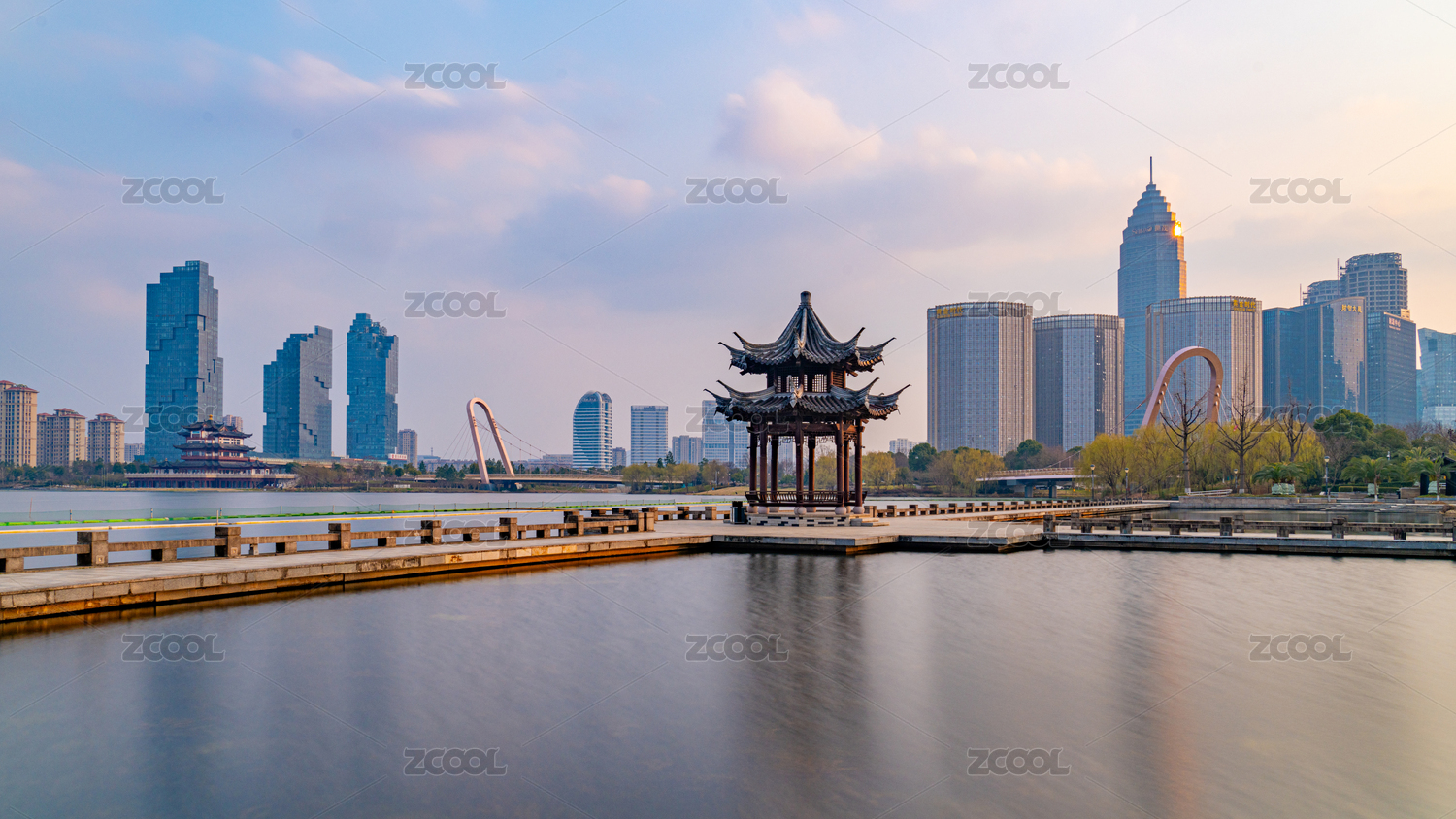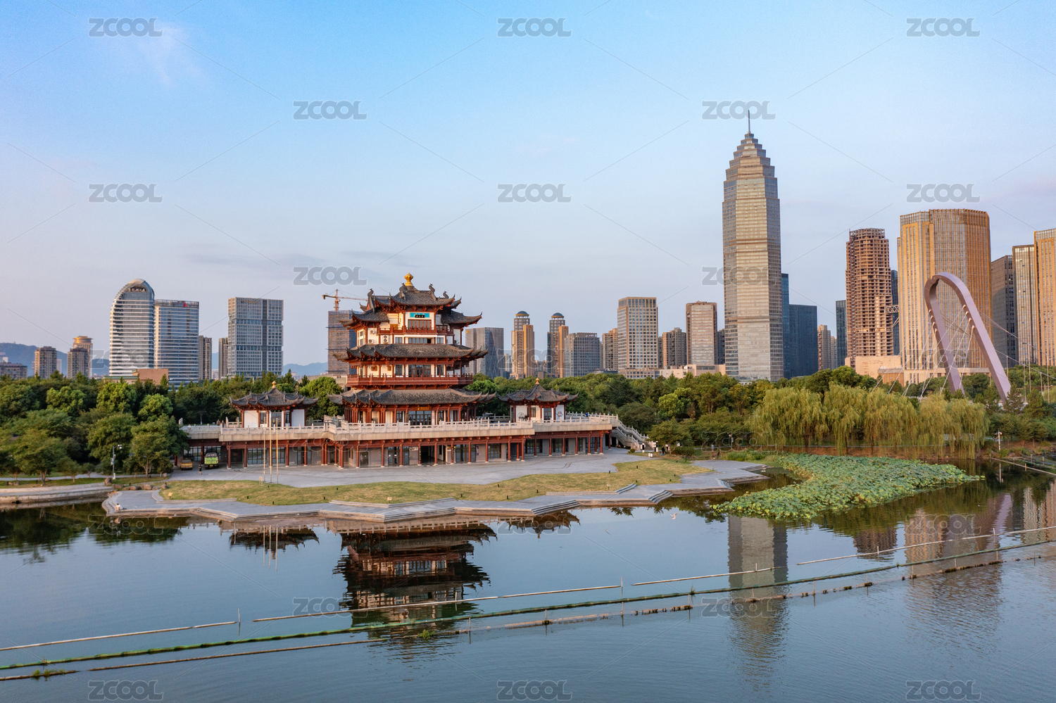中国浙江绍兴迪荡新城迪荡湖湖心亭风光