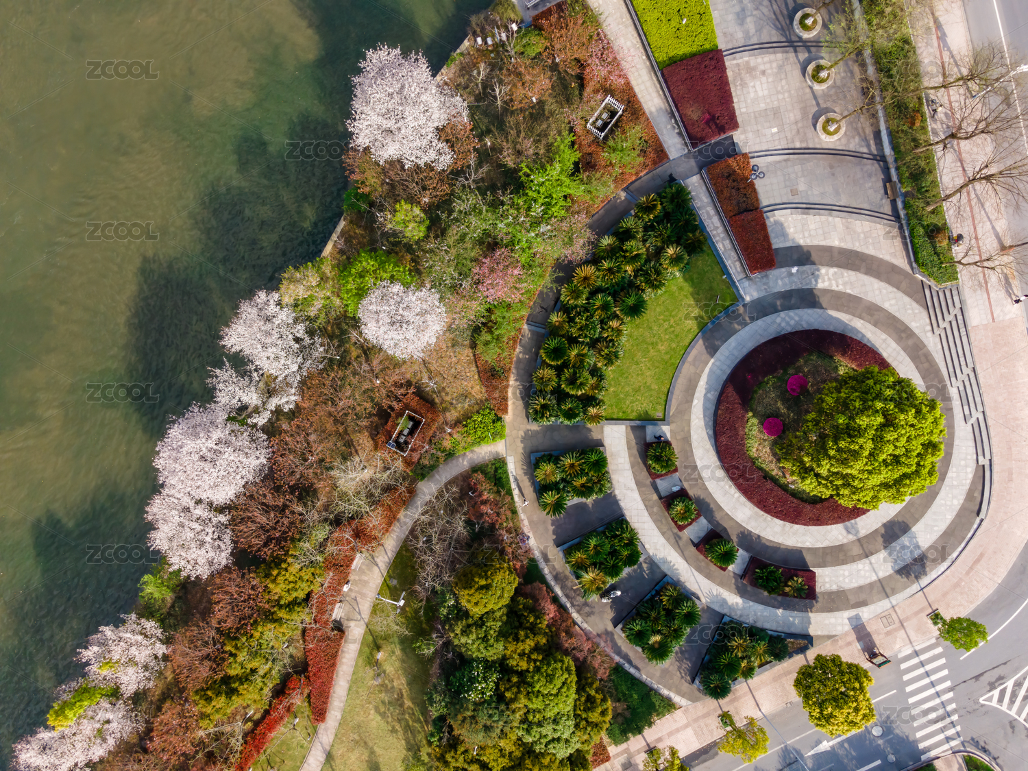 航拍浙江绍兴越城区迪荡湖莲花阁