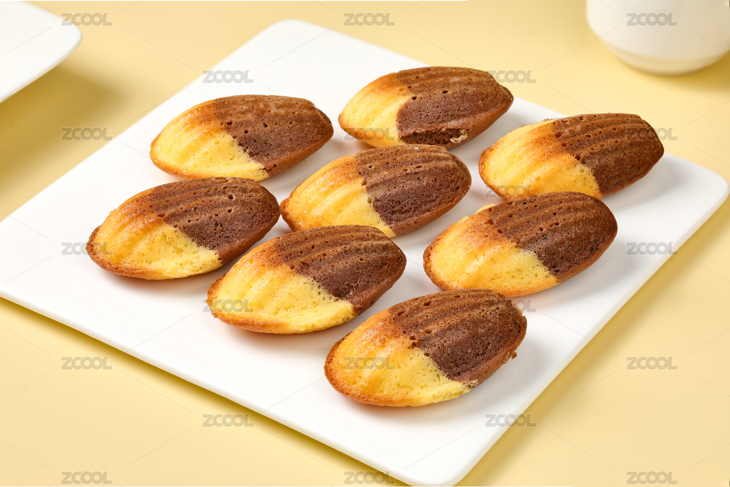 白色桌子上的一盘玛德琳小蛋糕