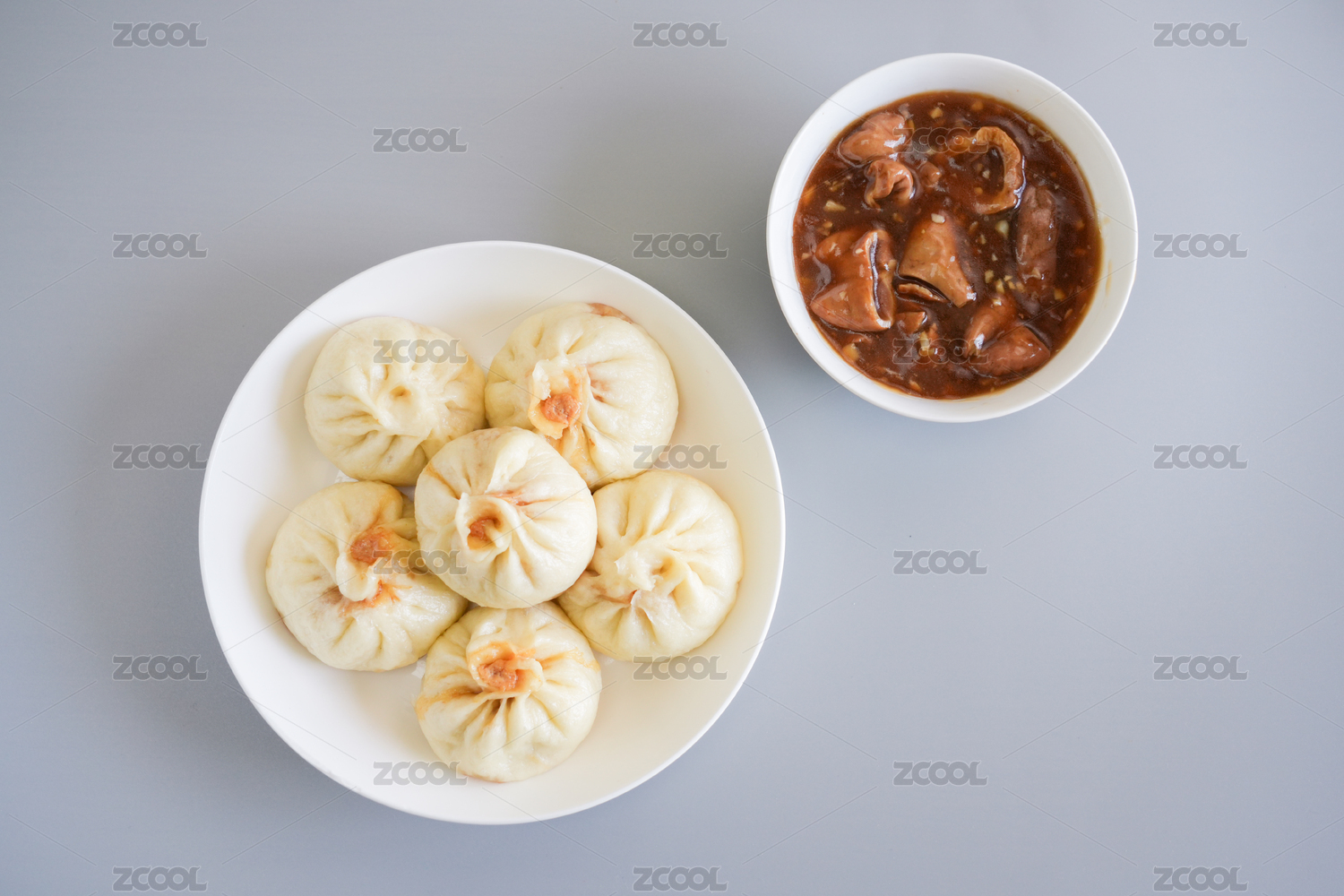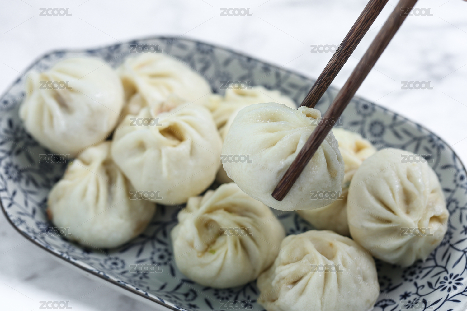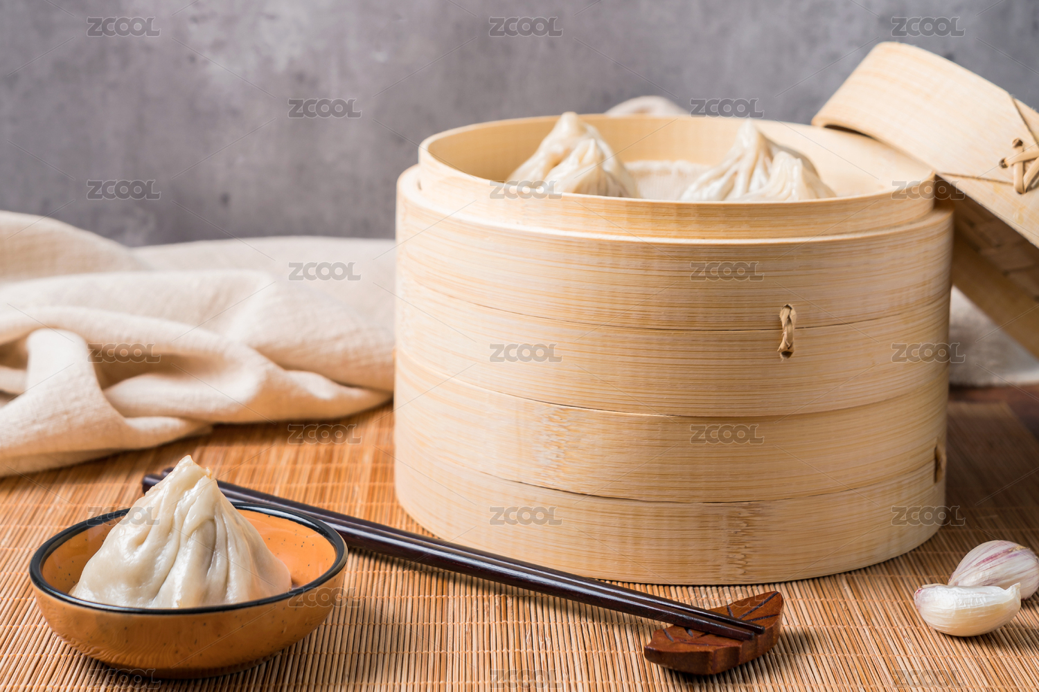 放在木桌上的中国江苏无锡特产美食鲜肉小笼