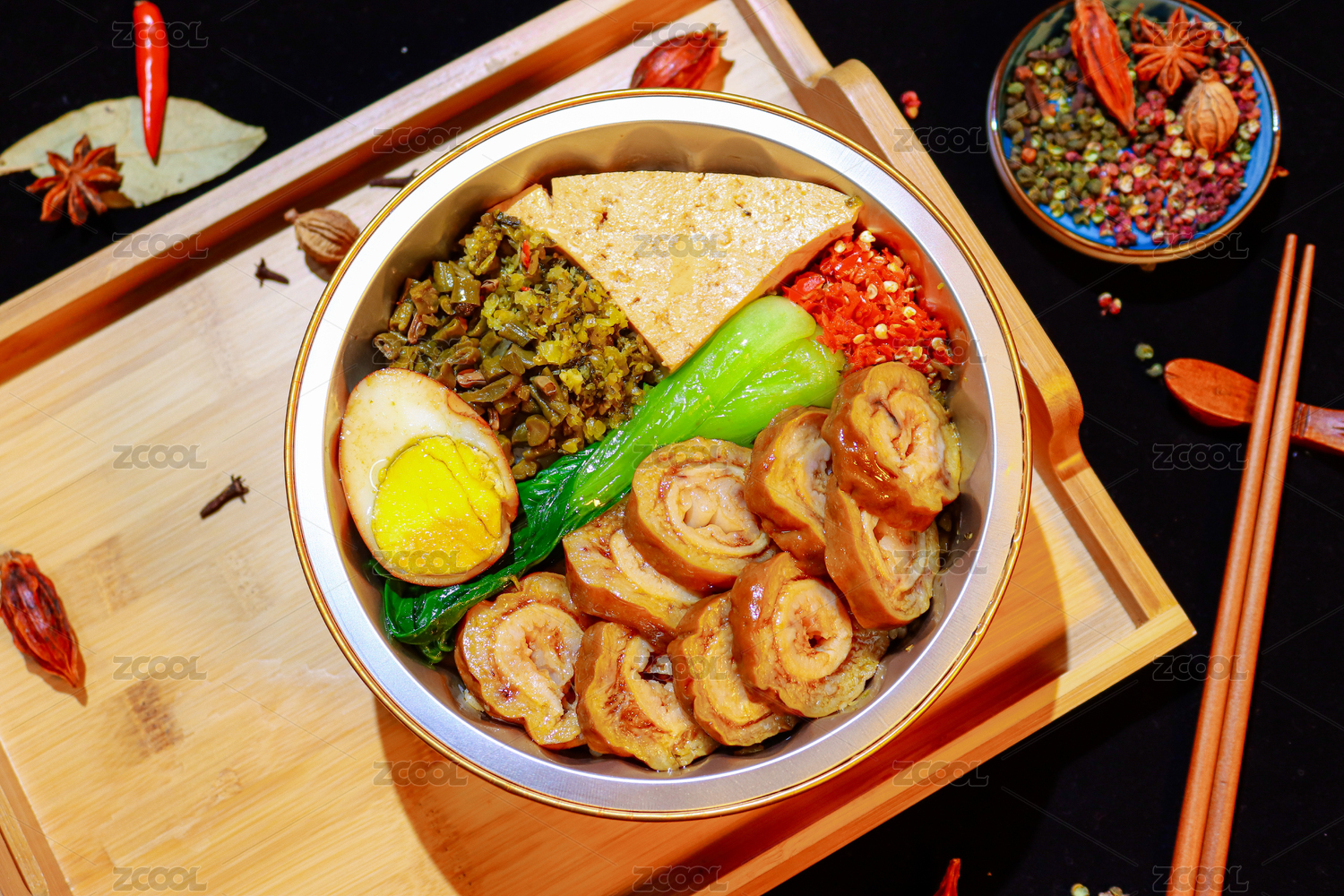 搪瓷碗里的卤猪蹄肥肠套饭