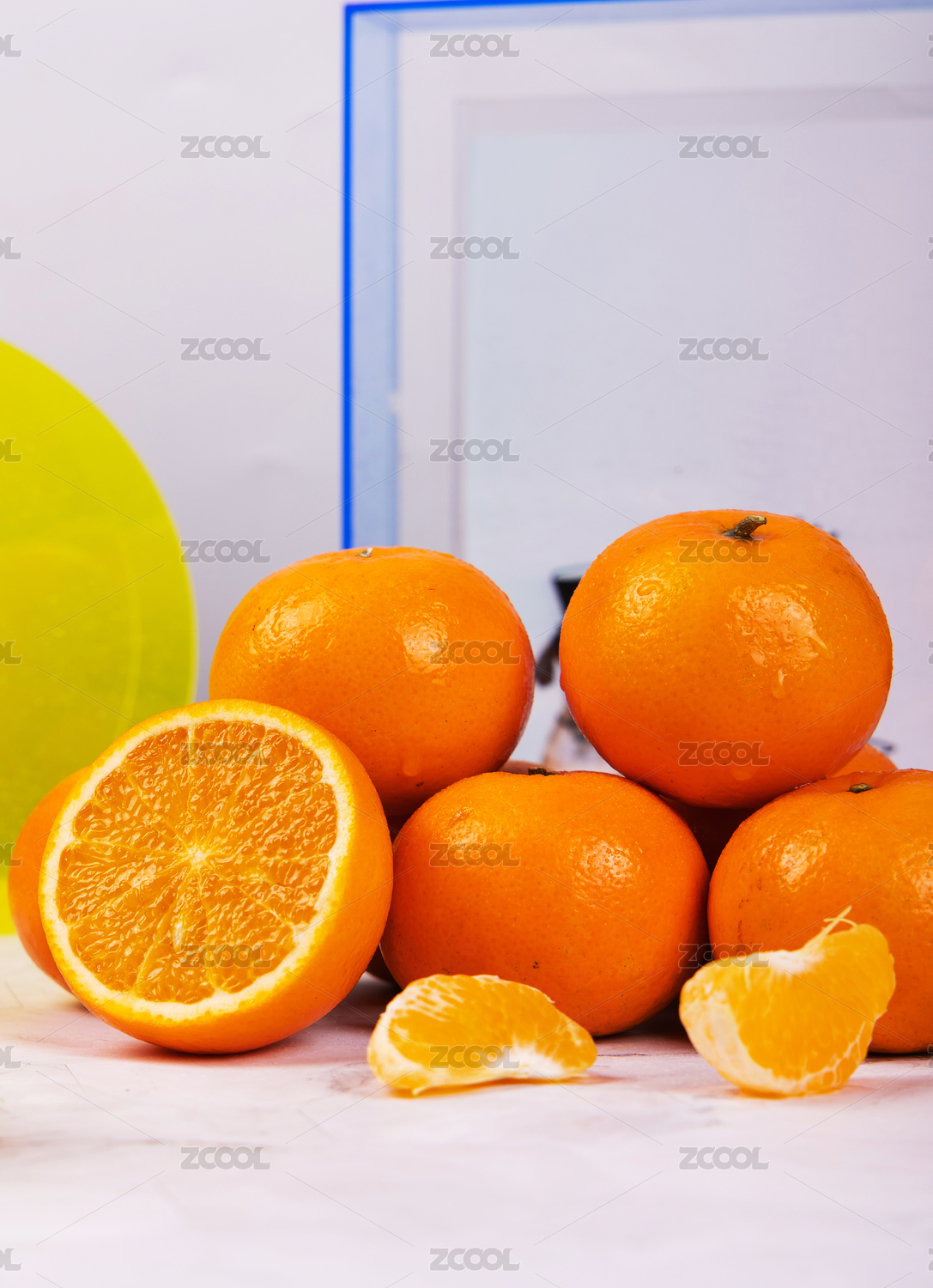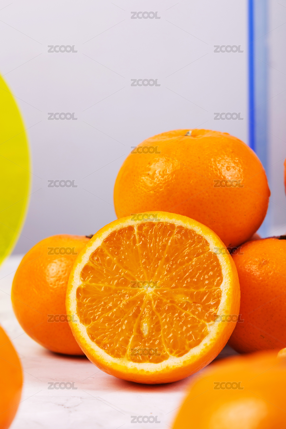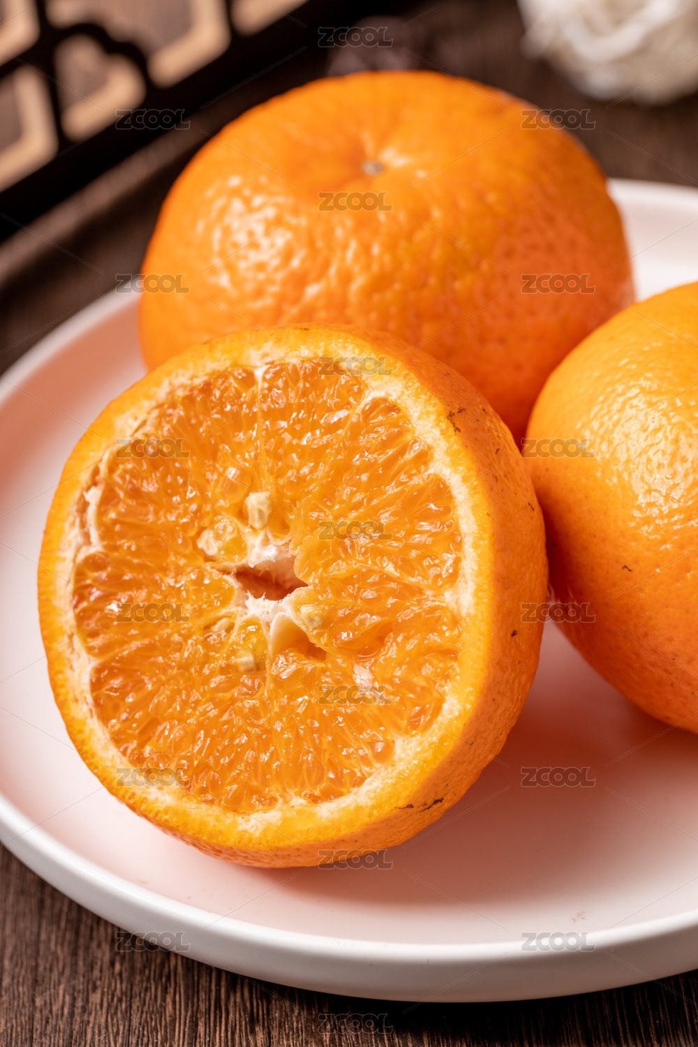 深底上放着切块的四川沃柑和一个完整的沃桔