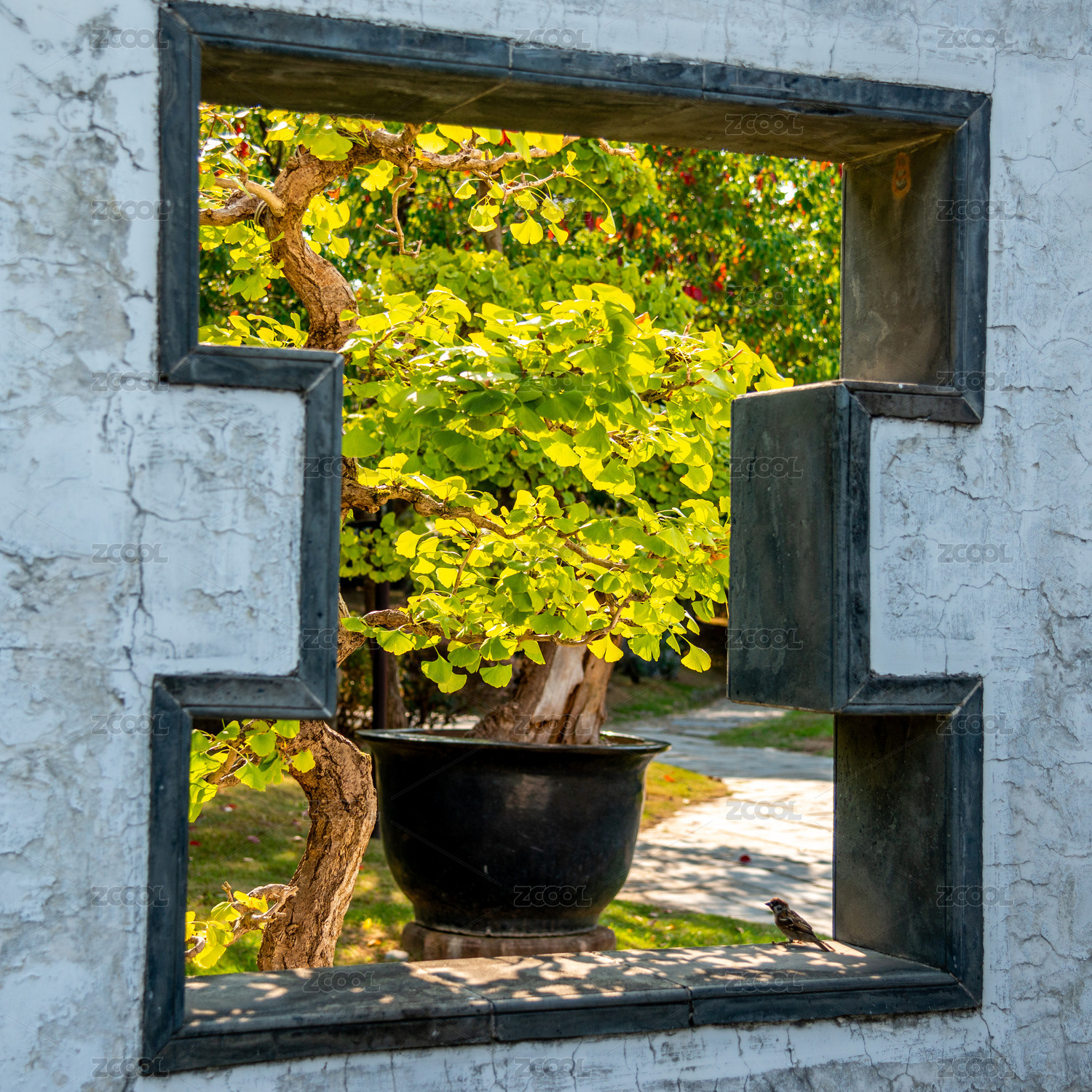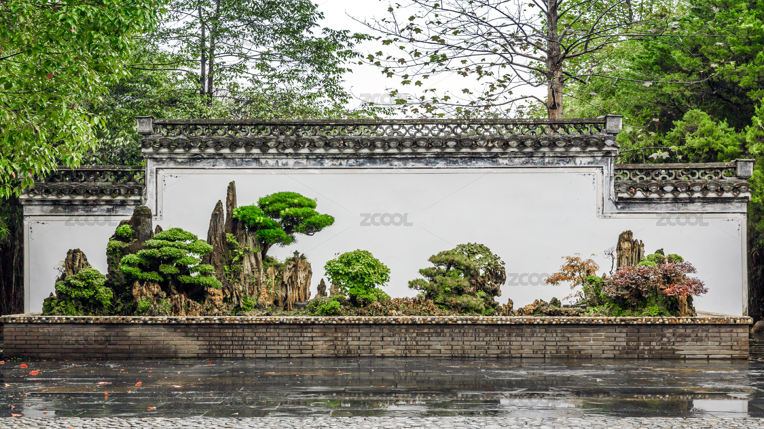 中国安徽省歙县棠樾鲍家花园盆景照壁