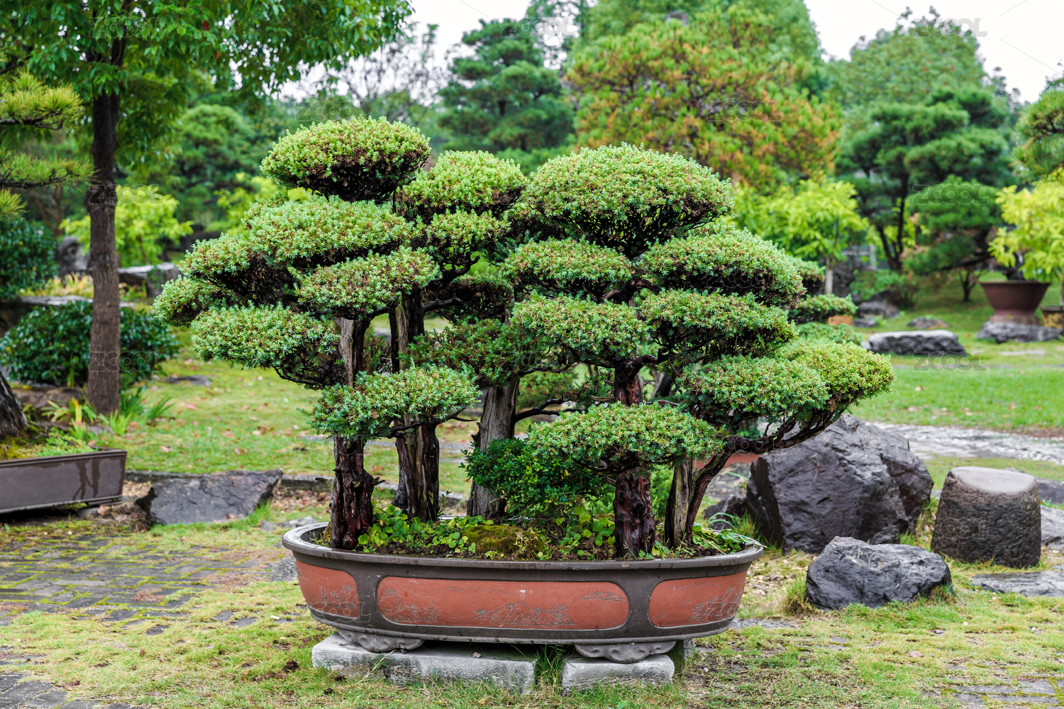 中国安徽省歙县鲍家花园盆景园内盆栽