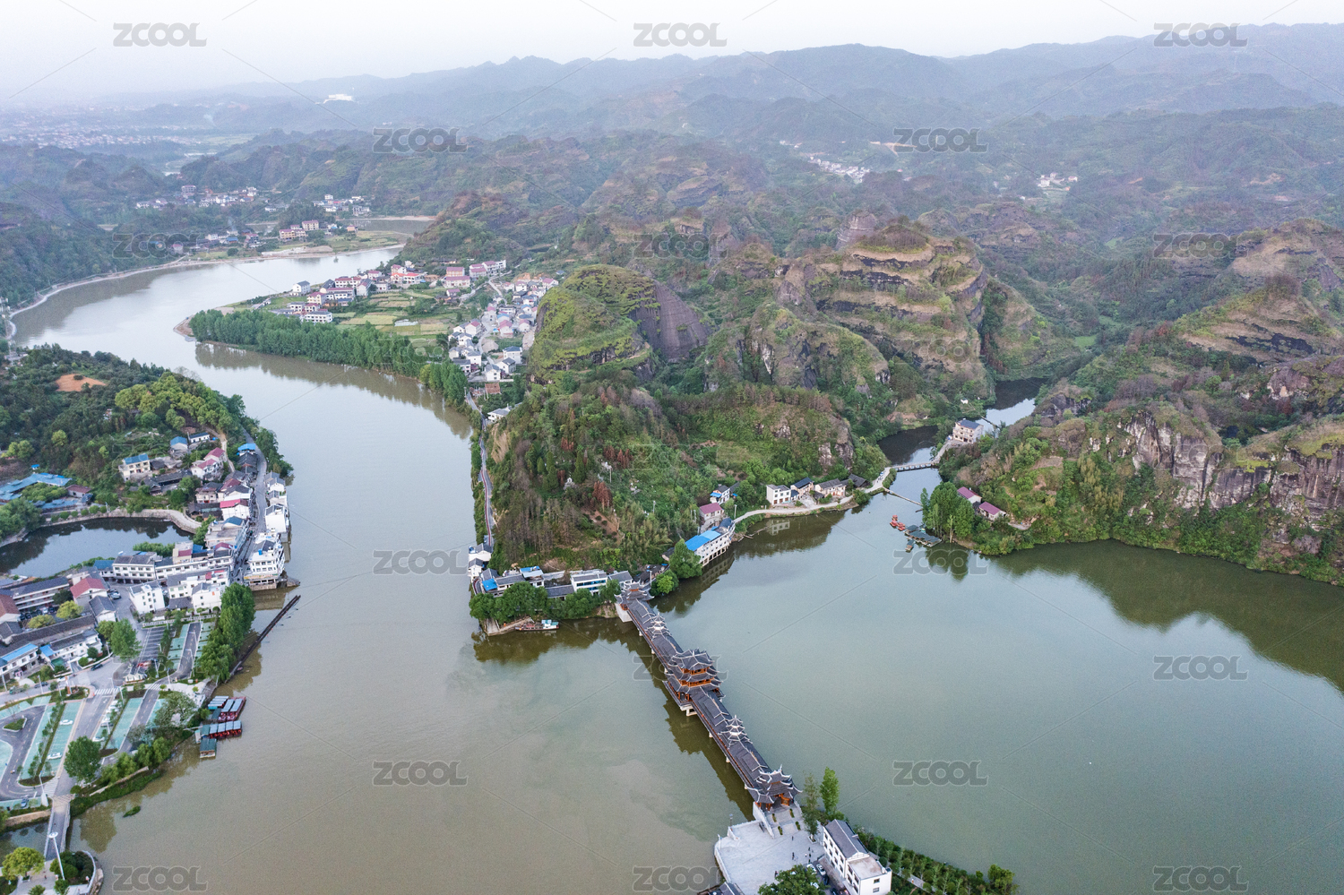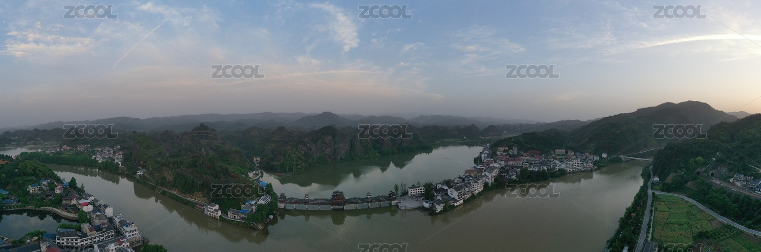 湖南省溆浦县思蒙国家湿地公园建筑群航拍图