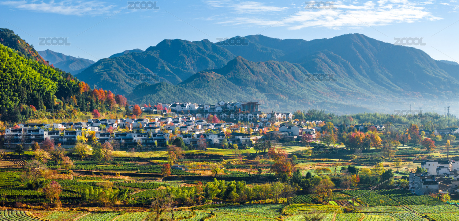 安徽徽州黄山黟县皖南徽派建筑秋色卢村村落