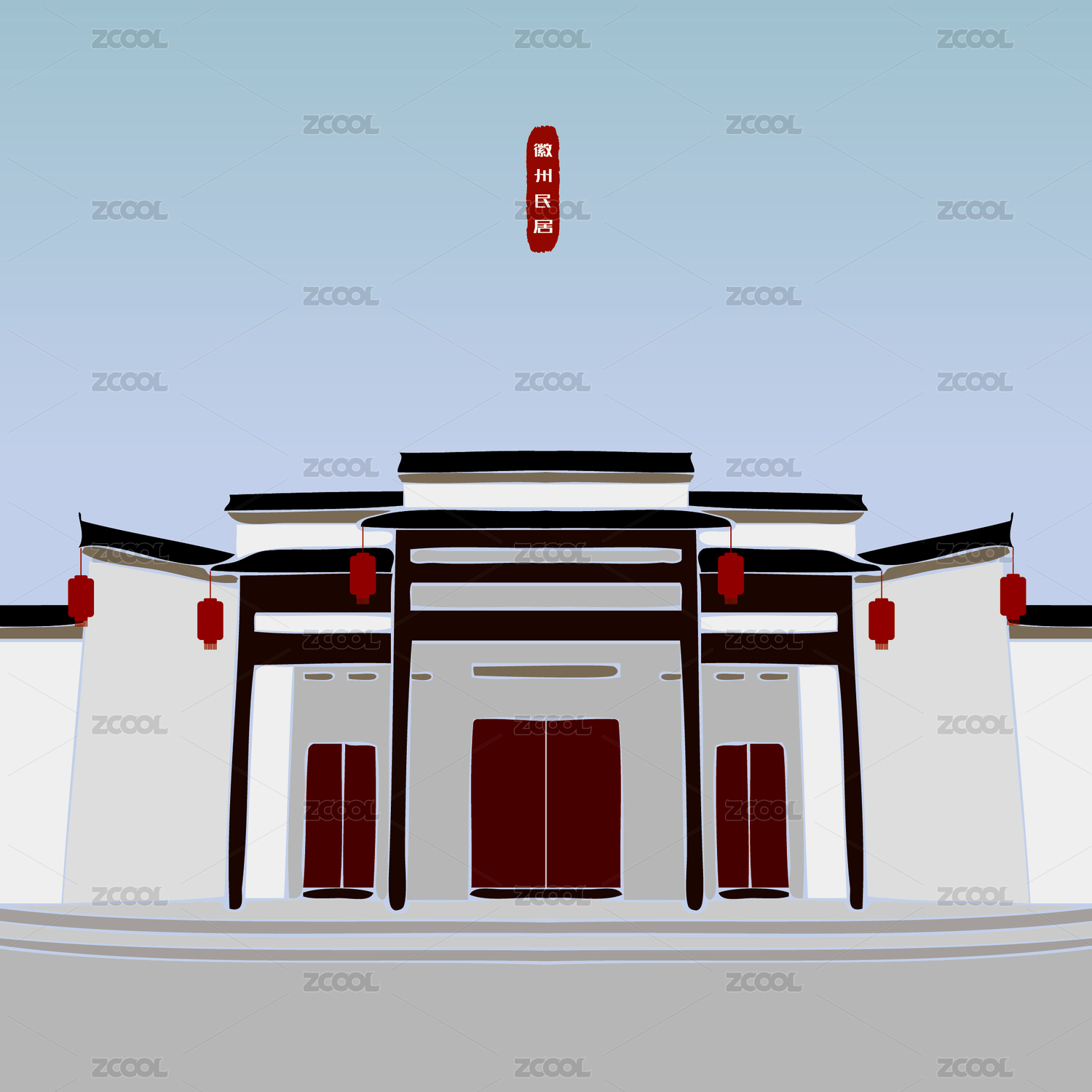 徽州 牌坊马头墙古宅建筑 标志矢量素材
