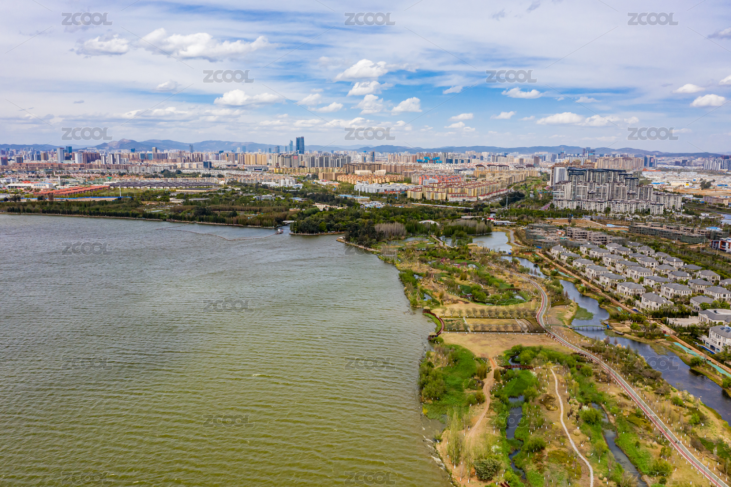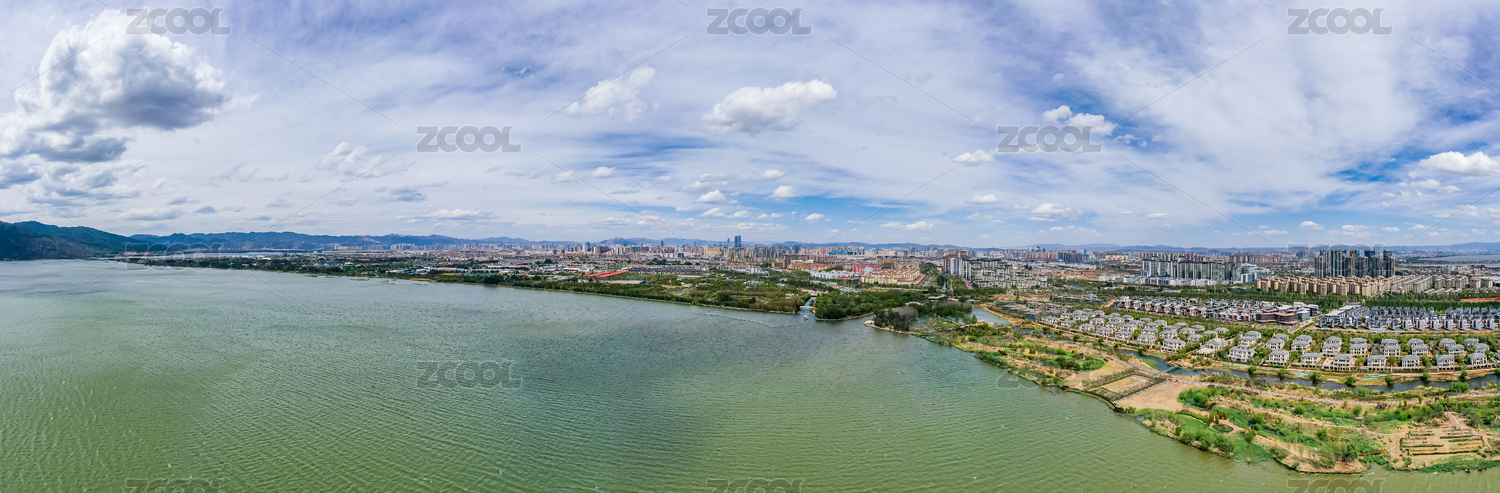 航拍云南昆明滇池星海半岛湿地公园生态自然